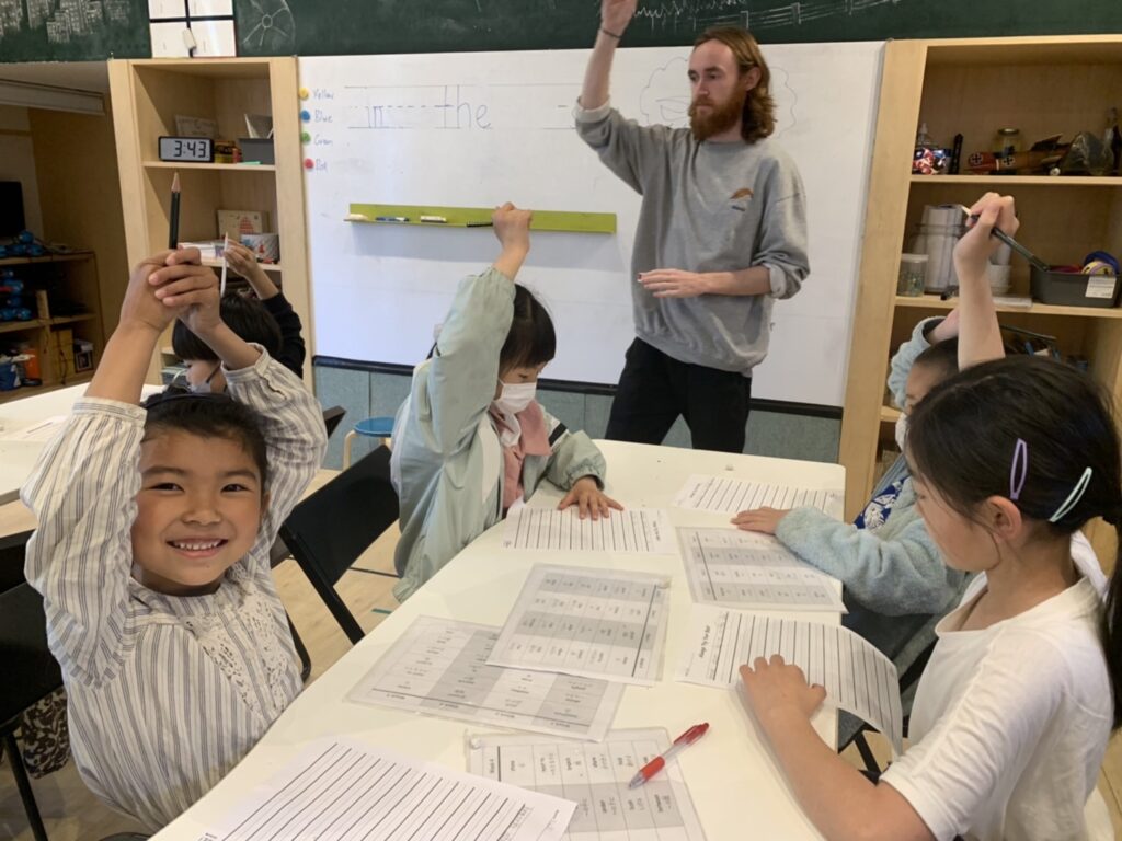 日本語の意味を確認しながら新しい単語の読み書きを練習しています!