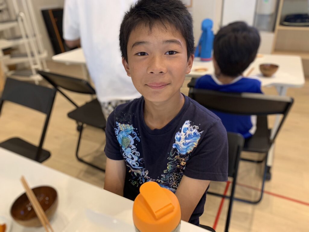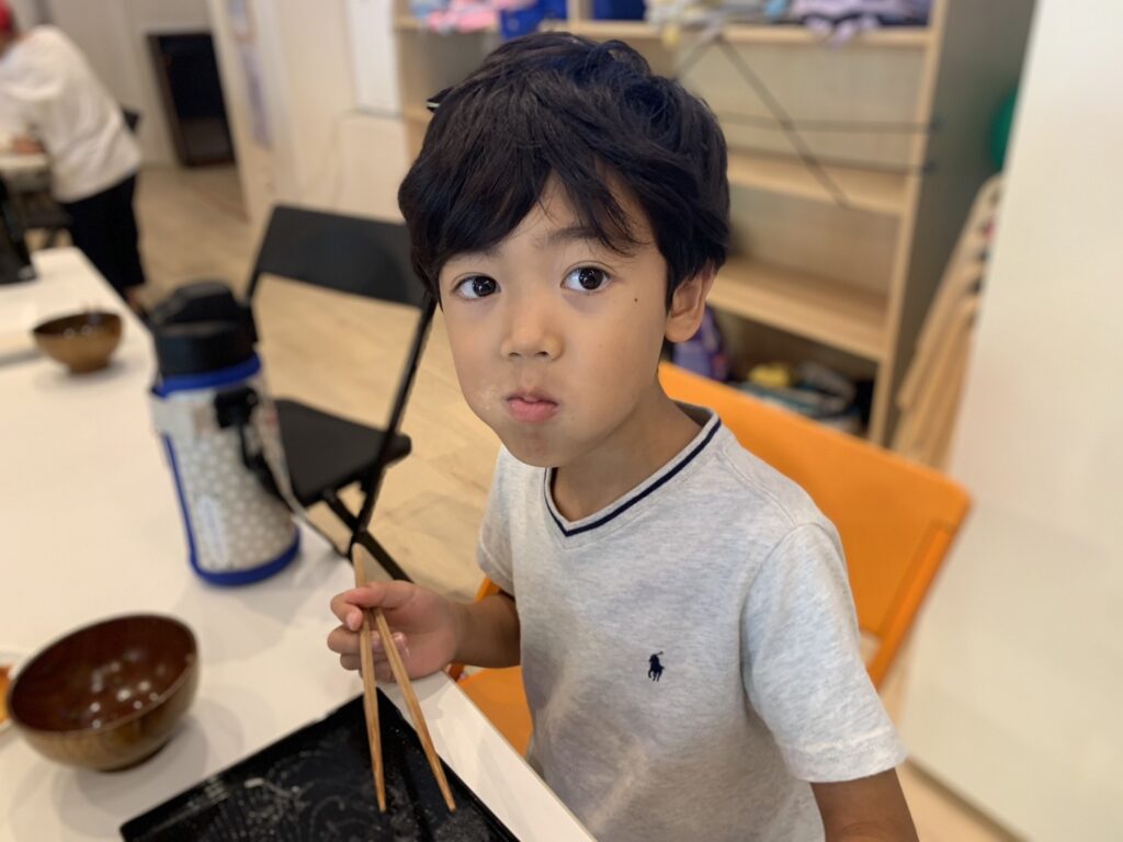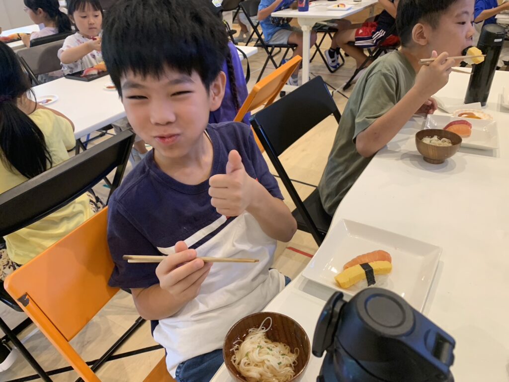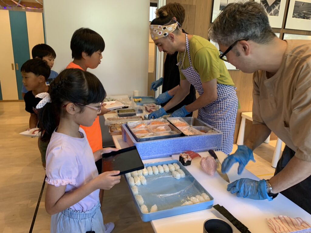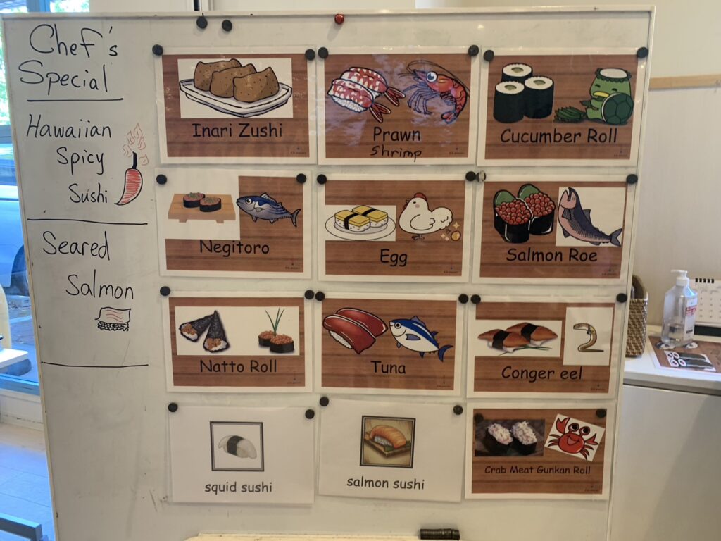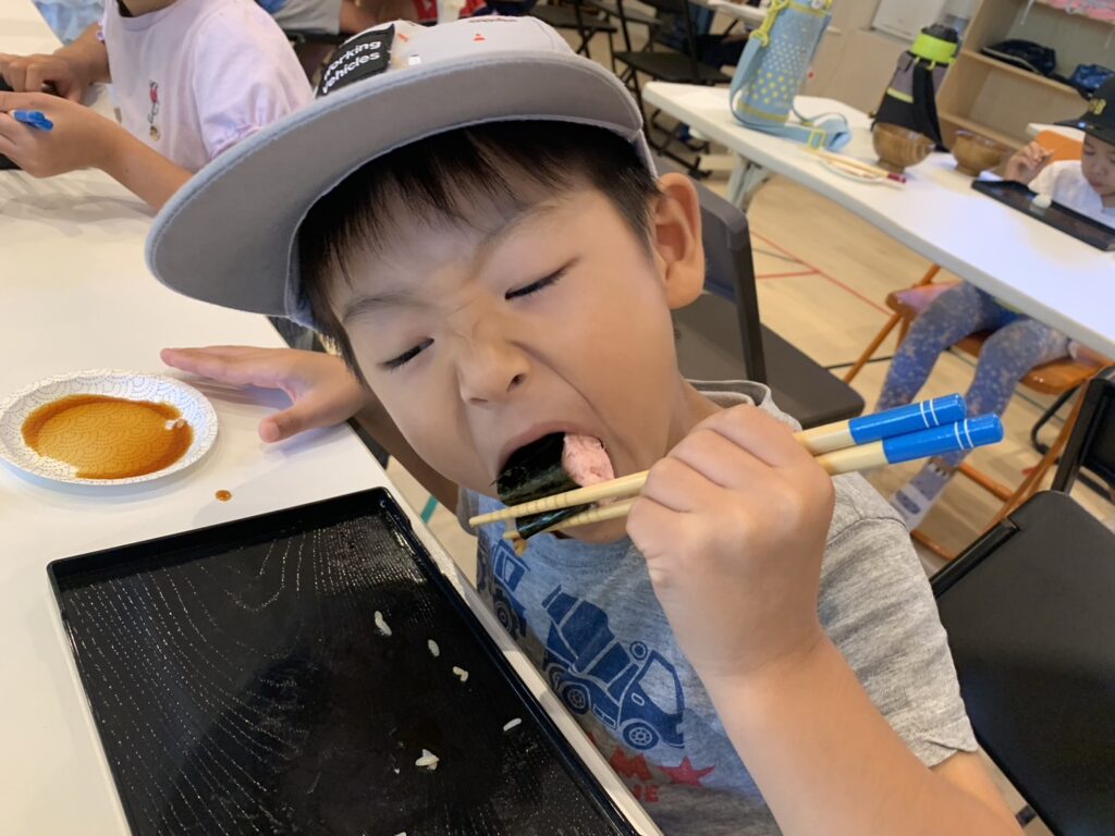 (ねえねえ、エビのすし、いくつ食べたの?)