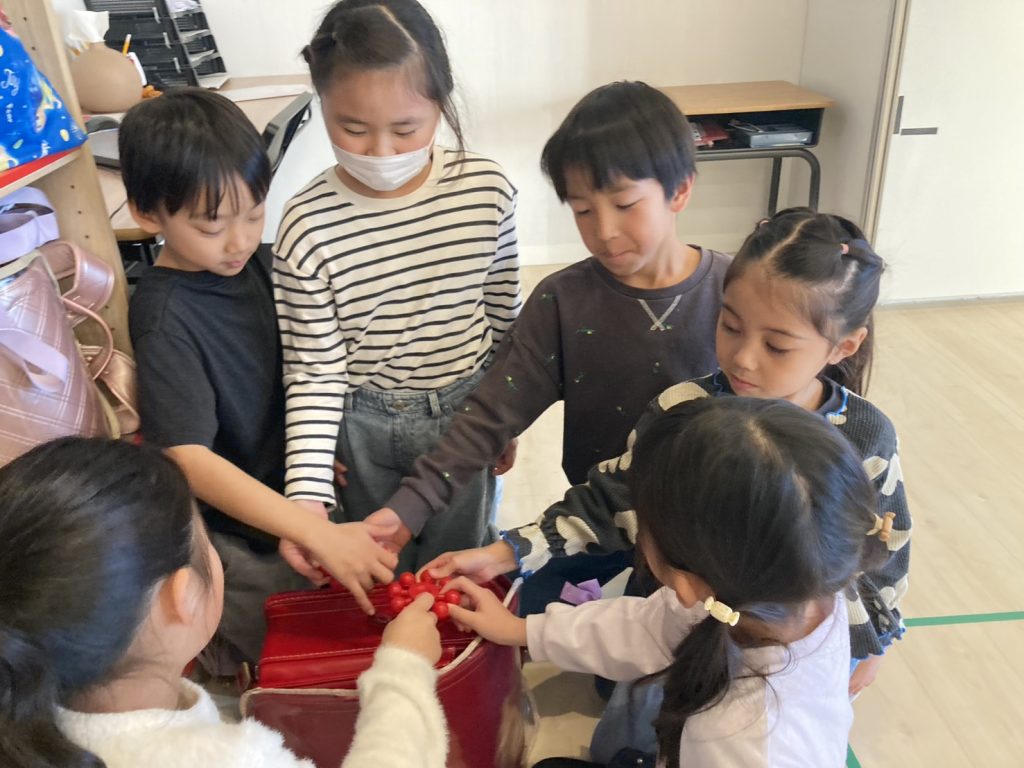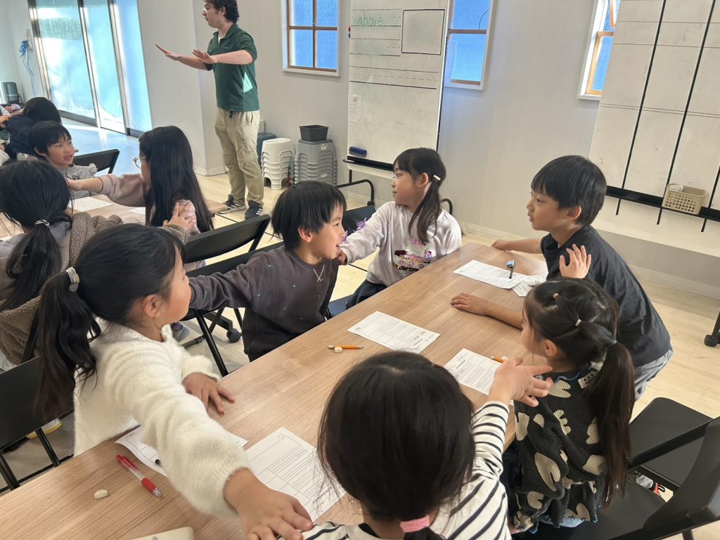 Q&Aで使うデスクを使って、デスクと同じ色の物を見つけてその上や隣に置いてみたり、チームの中で隣の生徒の肩をタッチしたりと体を使って覚えていきました!!