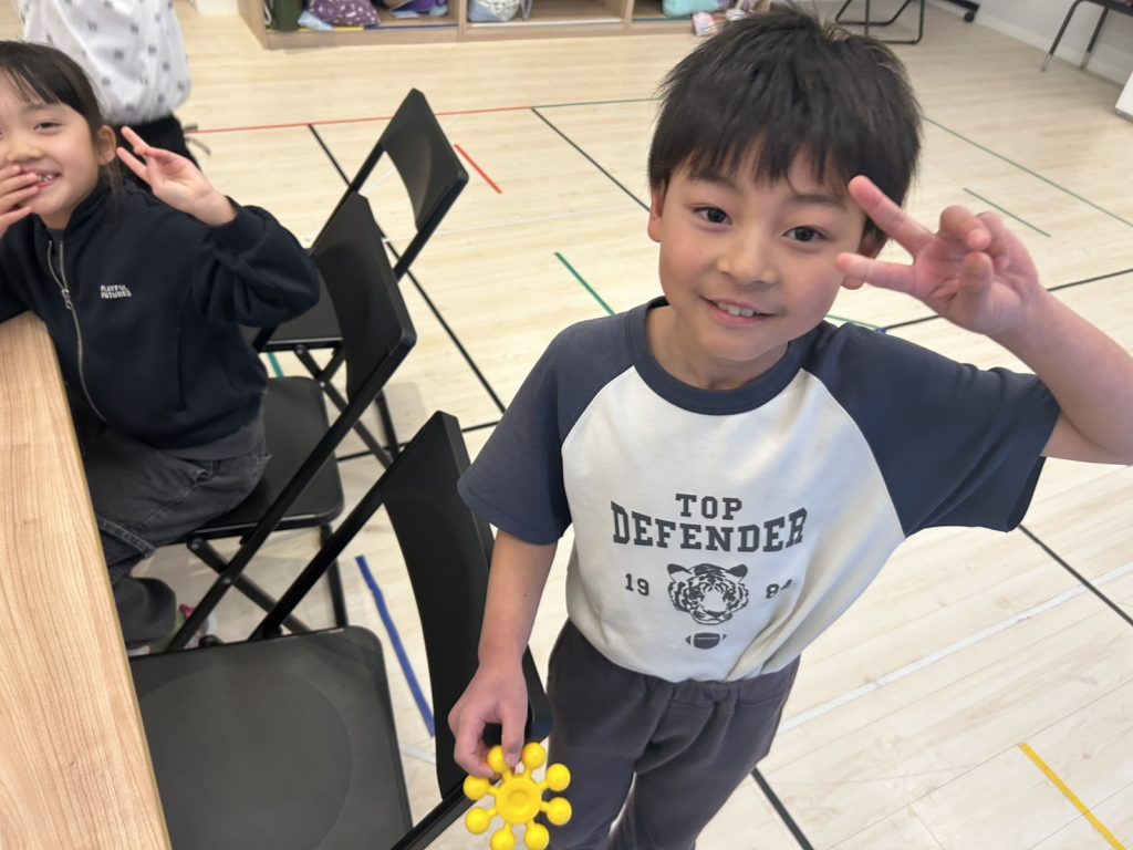 今日のワークショップでは、位置を表す単語を学びました!above(~の上に)、next to(~の隣に)、around(~の周りに)など似ているようで異なった意味を持つ前置詞ですが、生徒たちには楽しく覚えてほしいので様々なアクティビティを通して学びました!