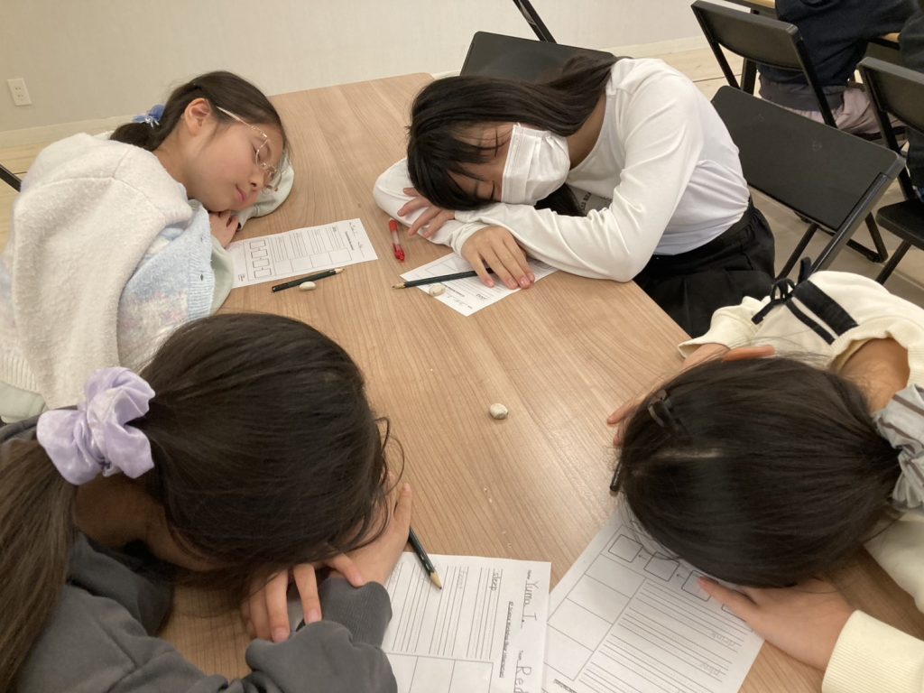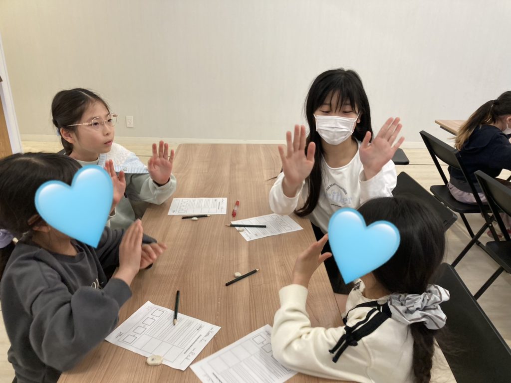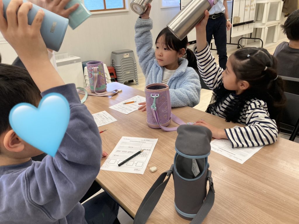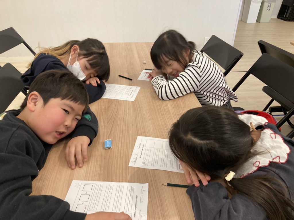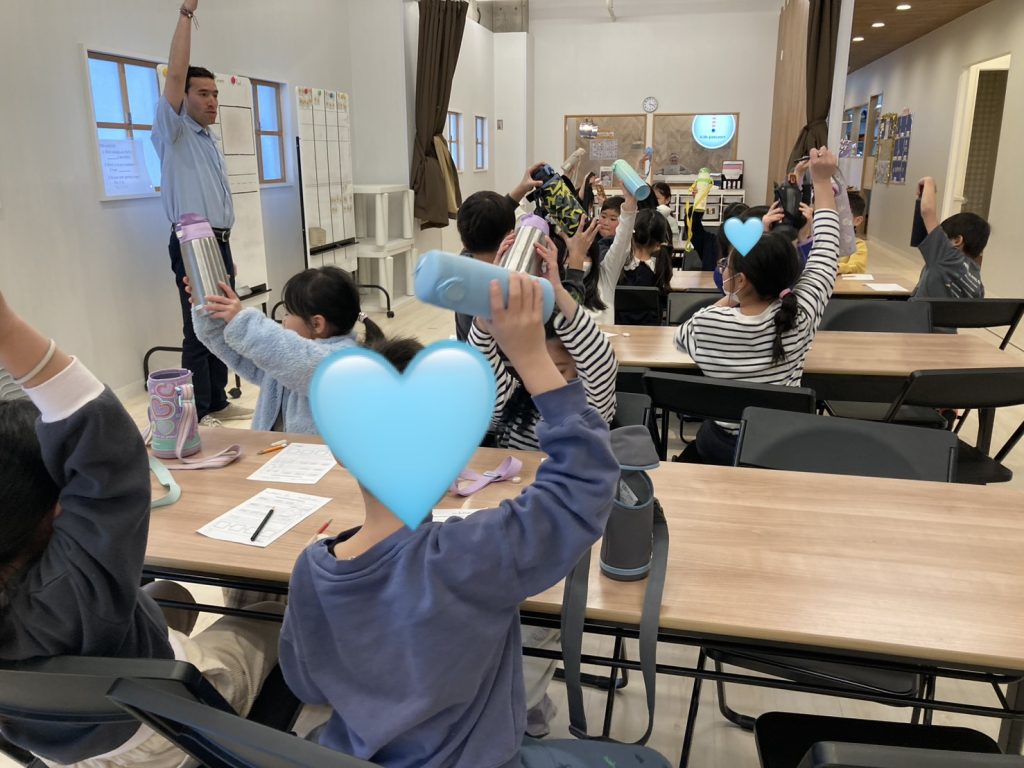 今日のワークショップでは、「熊の冬眠」に関係する動詞を学びました!KPのライティングレッスンは、色々なアクティビティを通して単語のスペルを学んでいきます!例えば、今日はdrink(飲む)という単語では、自分の水筒を持ってきて、チームのみんなでCheers!(乾杯!)をして、みんな揃って早く言えたら1ポイントゲット!というミニゲームをしました!!
