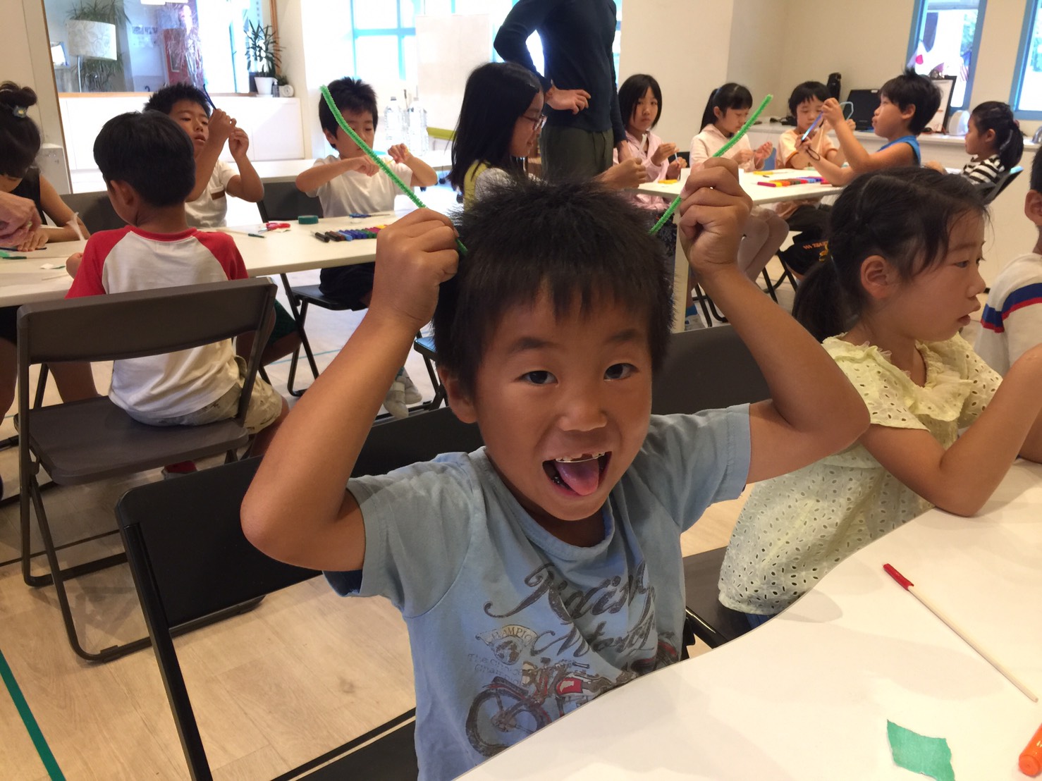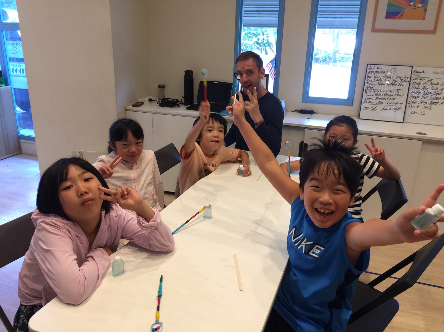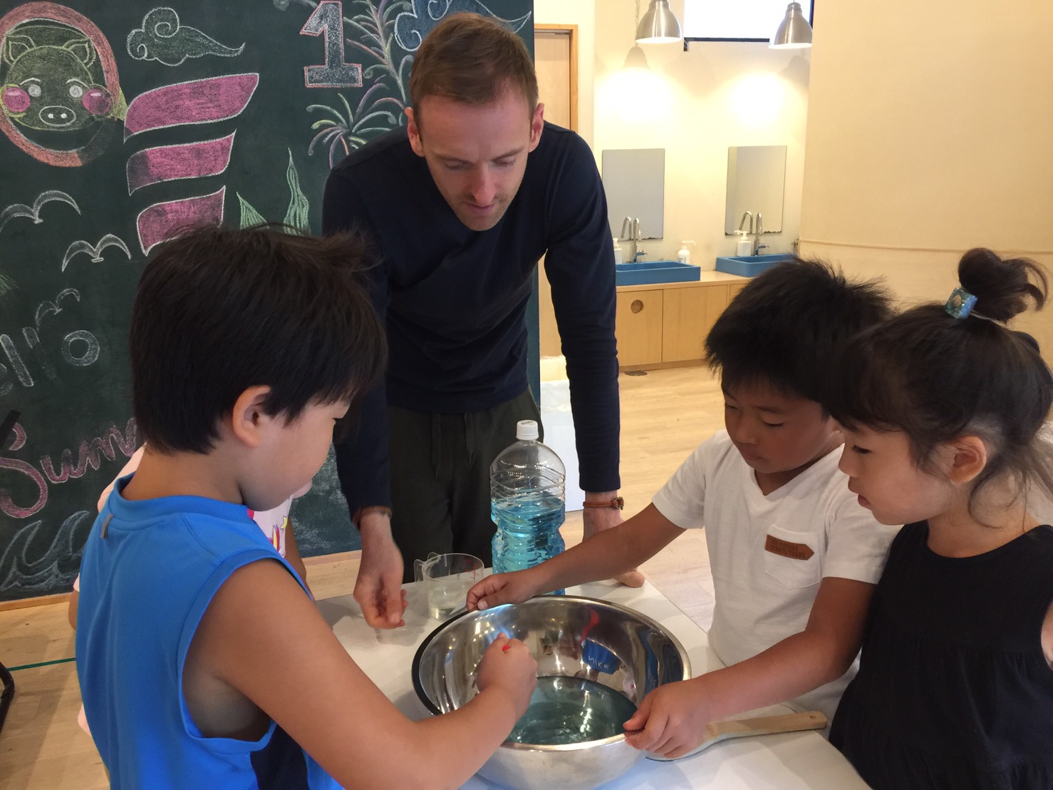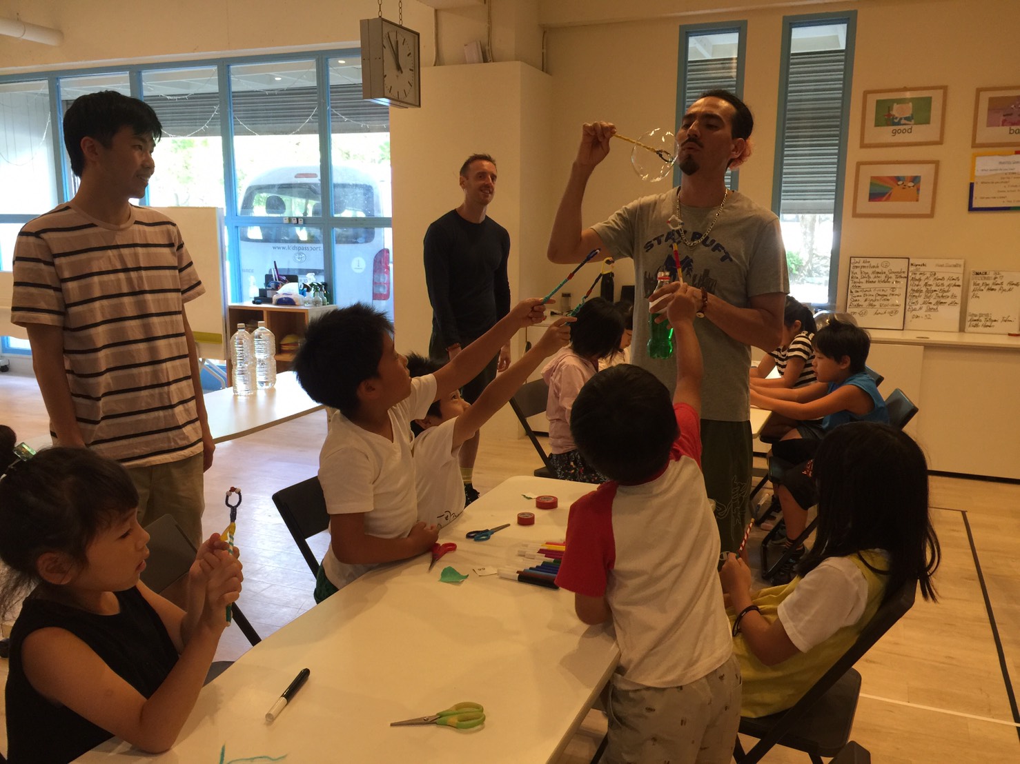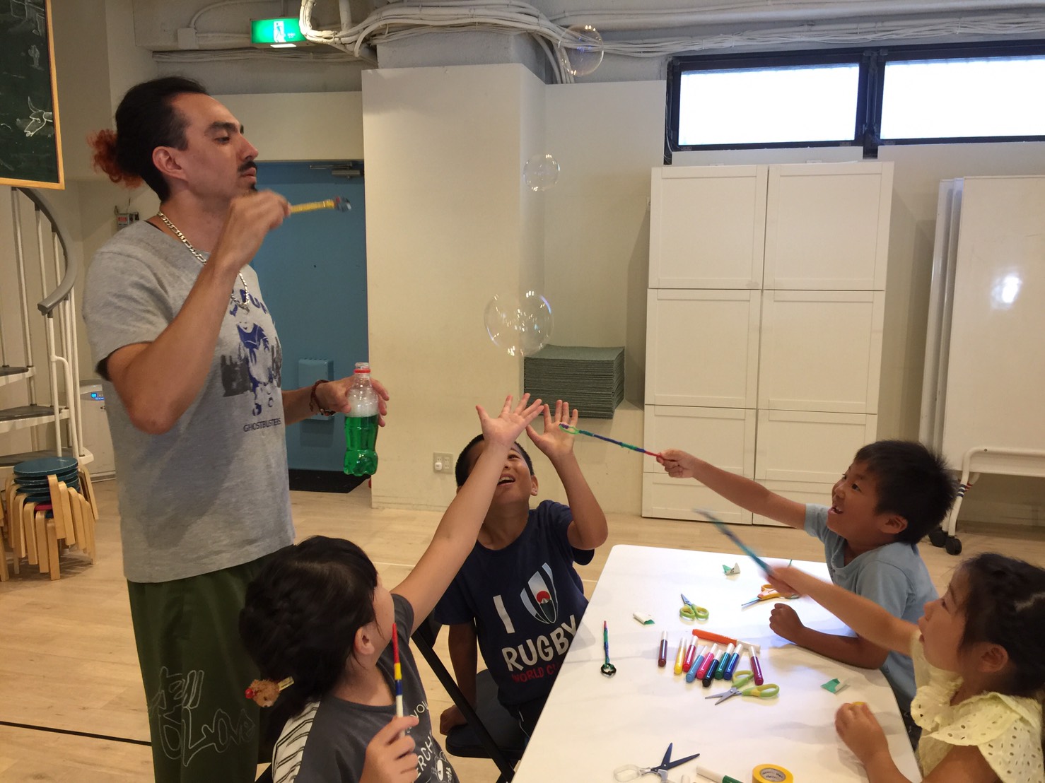 サマースクール11日目のイベントは”Making Bubbles”(シャボン玉作り)をやりました。