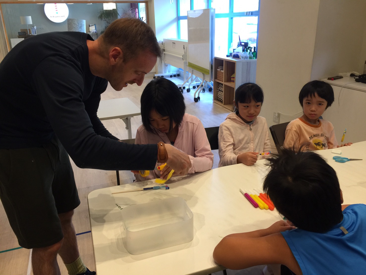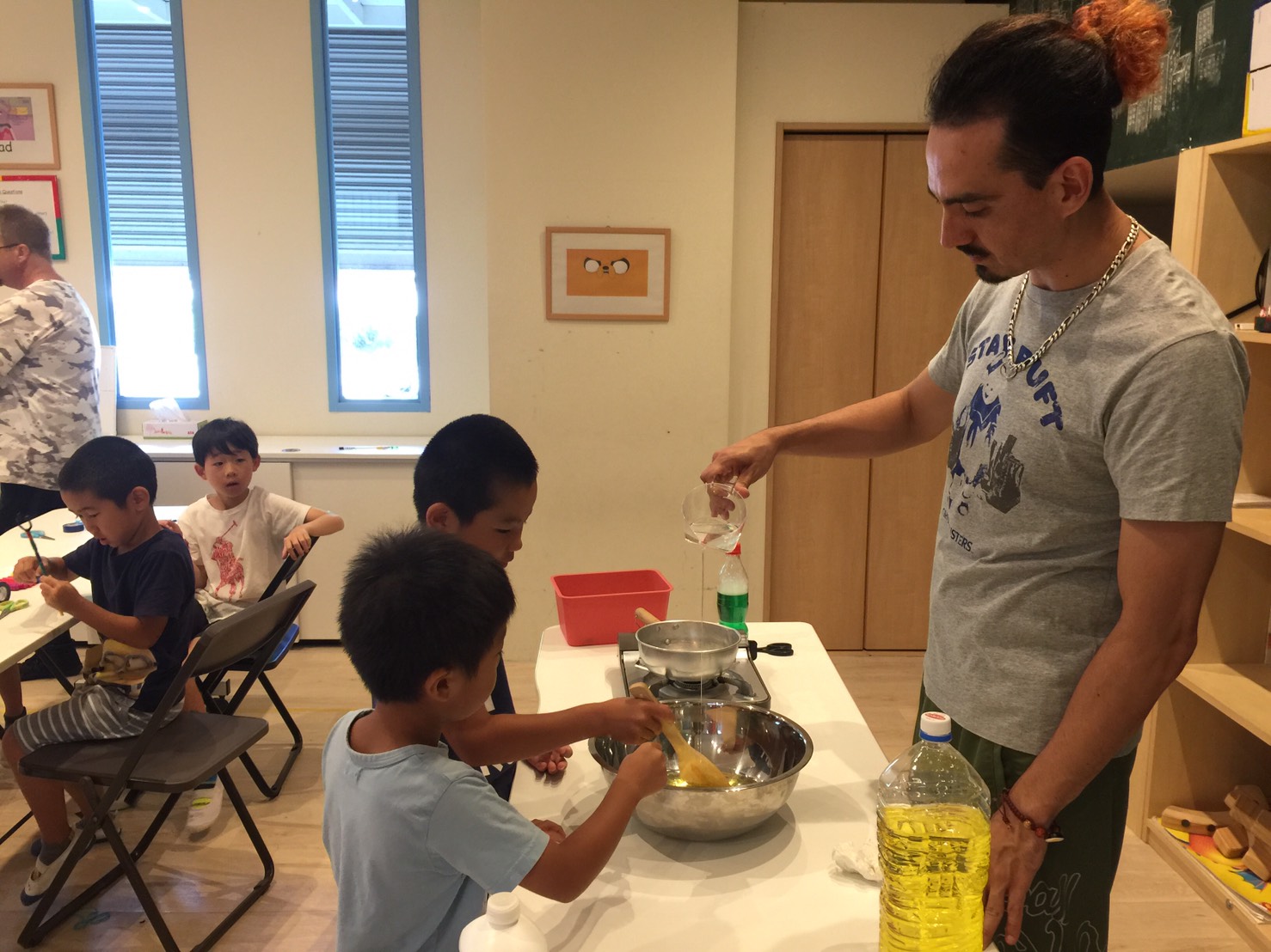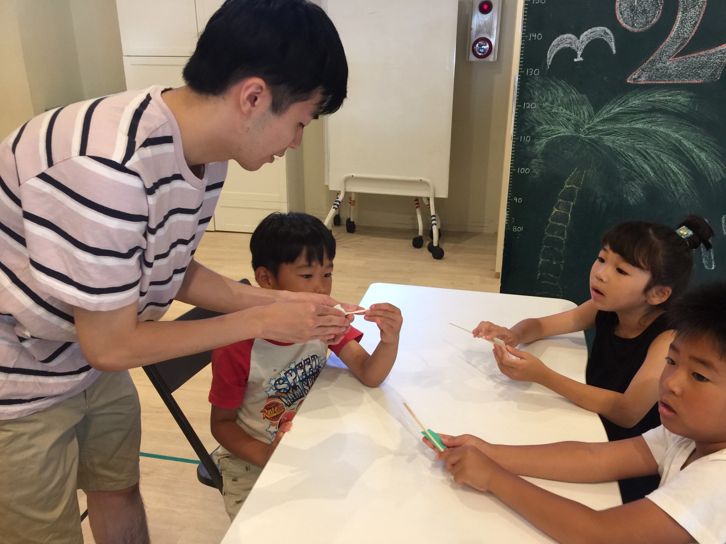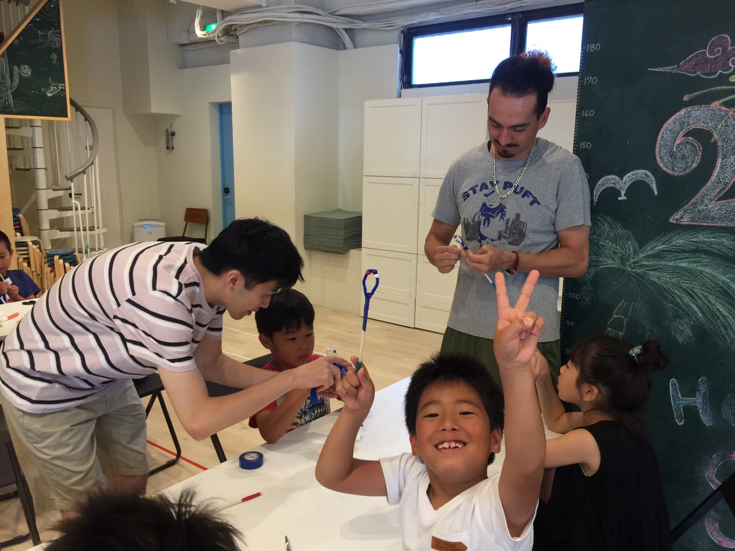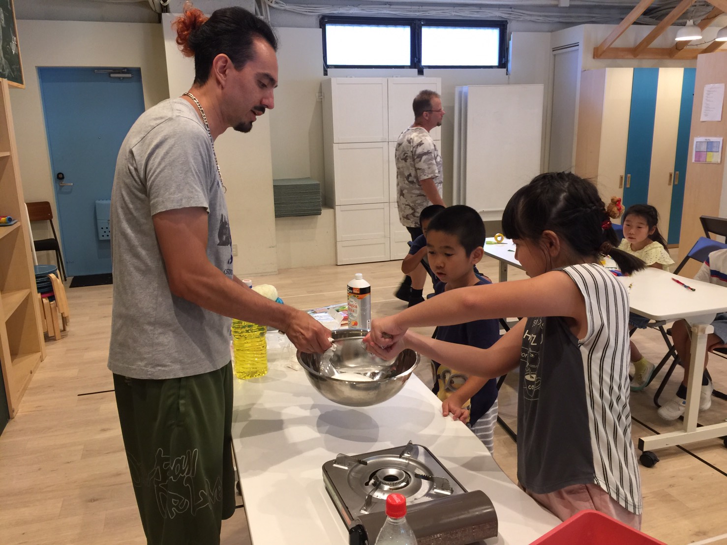 サマースクール11日目のイベントは”Making Bubbles”(シャボン玉作り)をやりました。
