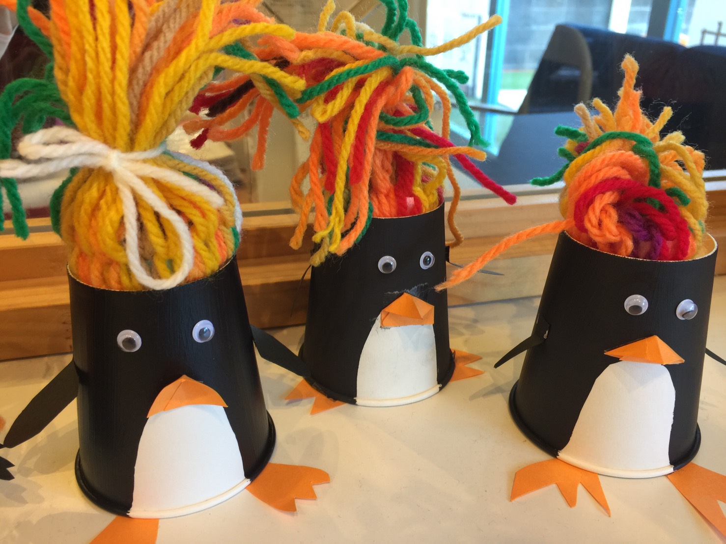 ウィンタースクール3日目の今日は”Paper Cup Penguin”(紙コップのペンギン)を作りました。