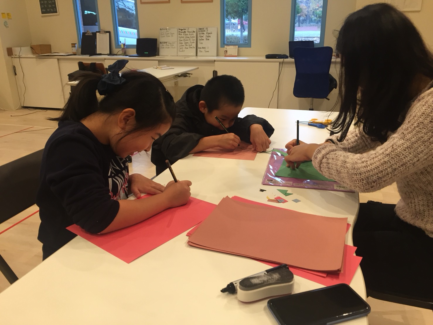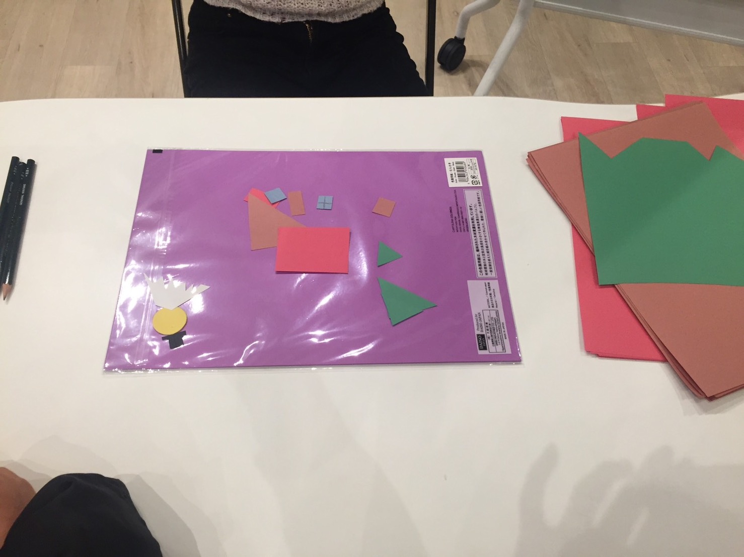 色画用紙をいろいろな形に切っていきます。“Circle”(丸)