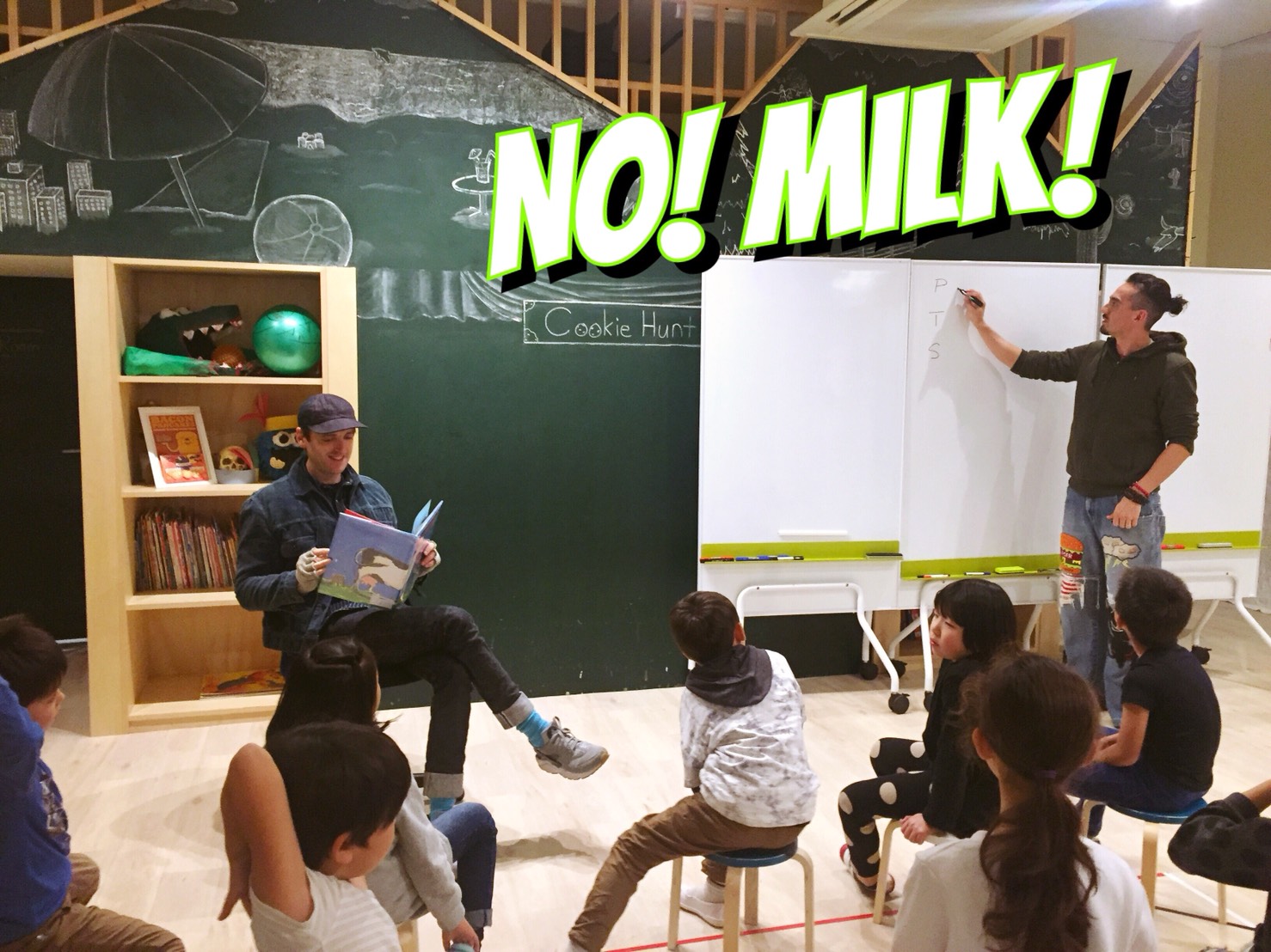 今日の”Read aloud”(読み聞かせ)の時間は“No milk!”(ミルクが出ない!)という絵本を先生が読んでくれました。