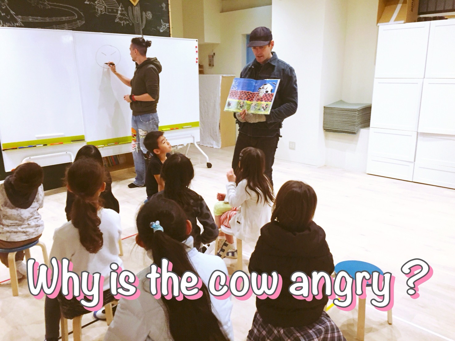 先生:”Why is the cow angry?”(どうして牛は怒ってるの?)