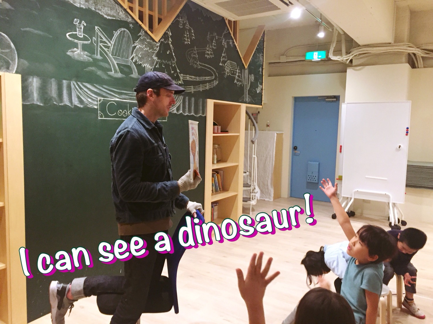 今日の絵本は“Dinosaur”(恐竜)がでてくるお話。