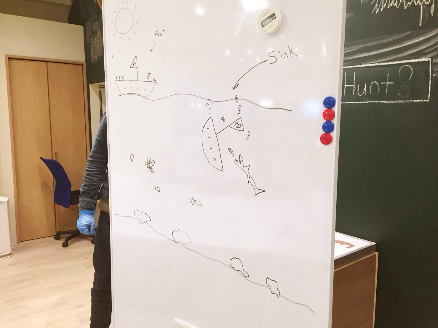 先生:“Do you think it will float or sink?”(これは浮くと思う?それとも沈むかな?)