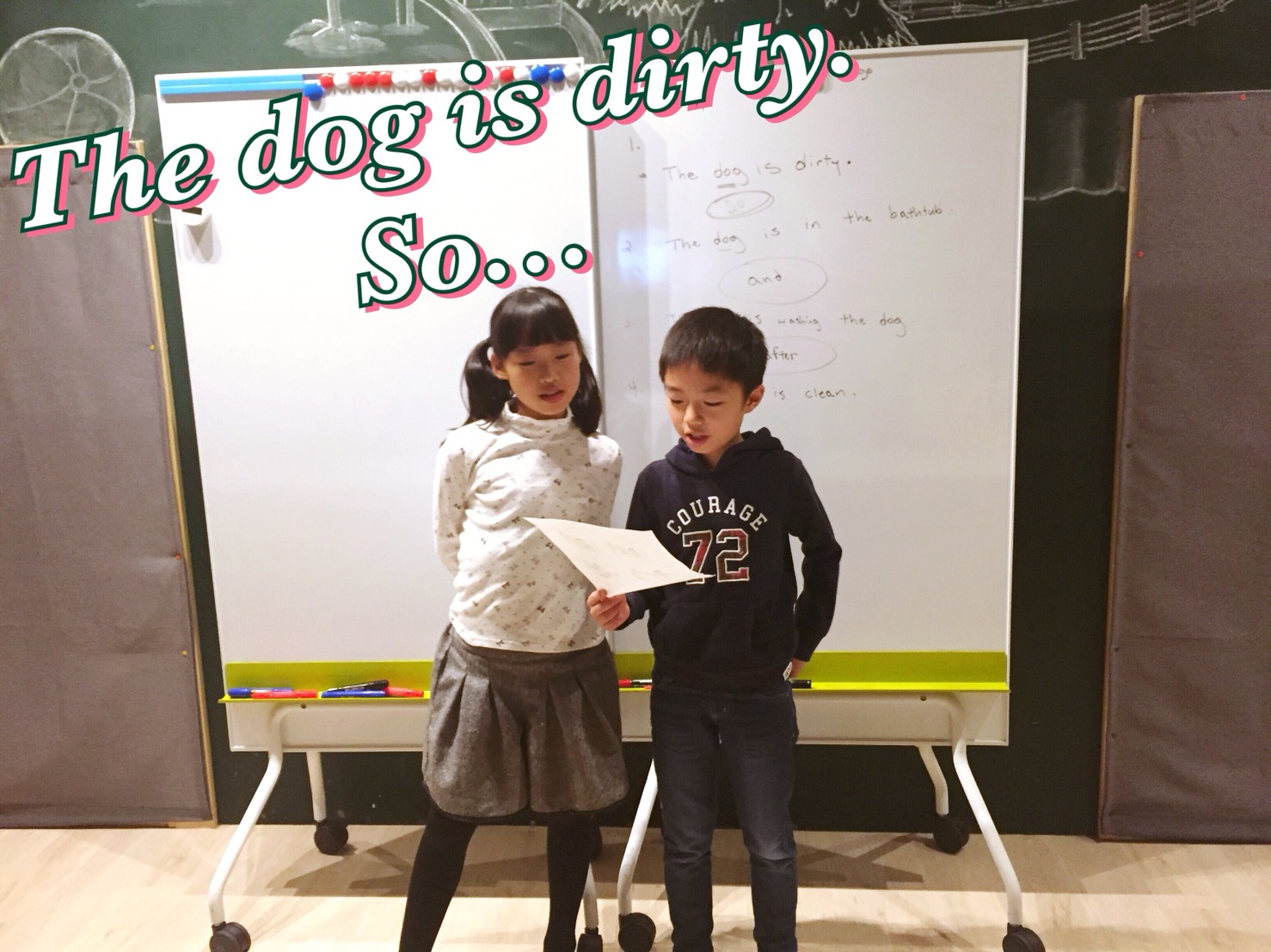 わからないところは、先生たちにアドバイスをもらったり、文法の間違えもしいかりと正しながら、できたセンテンス/ストーリーを発表。