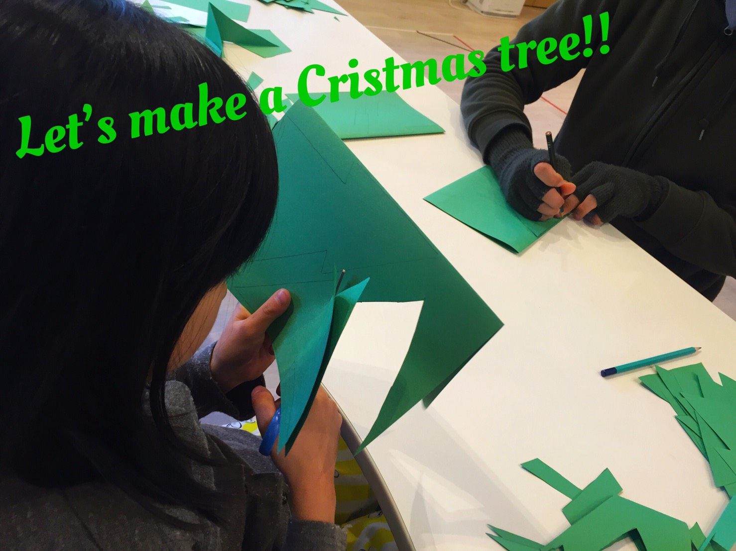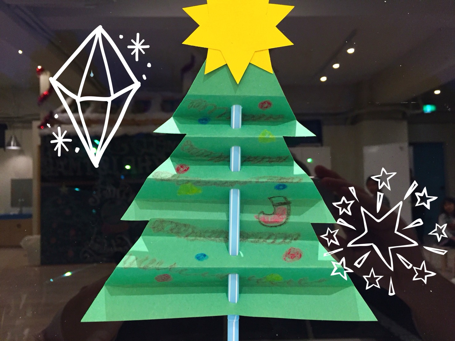 学校が早くに終わった生徒さんは宿題を終わらせて、クラフトタイム。今日はスクールに飾るクリスマスツリーを作りました!