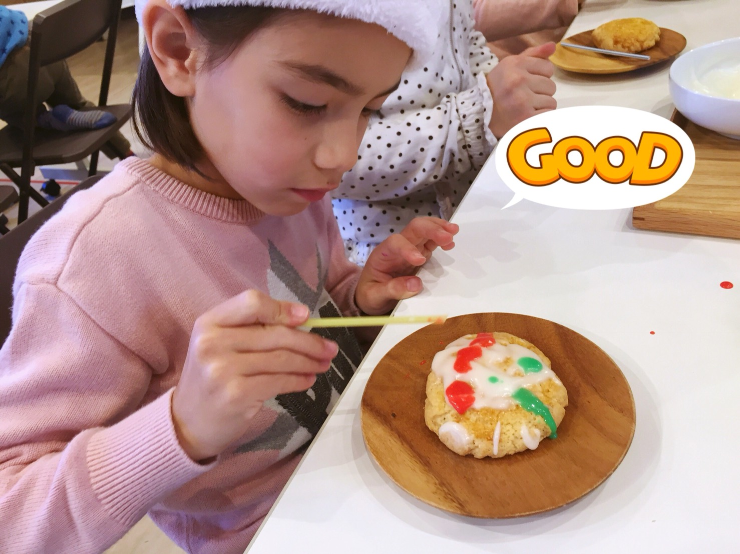 それぞれのイメージするクリスマスをクッキーに描いて、みんなで美味しくいただきました!