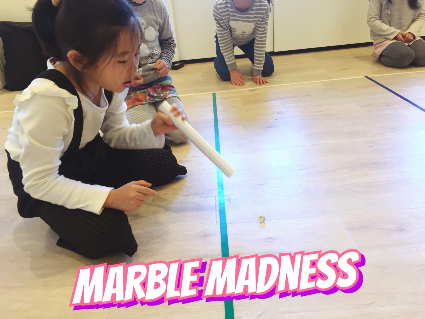 午前中のイベントは”Marble madness“(ビー玉ゲーム)いくつかのチームに分かれて”Teamwork”(チームワーク)でがんばりました。