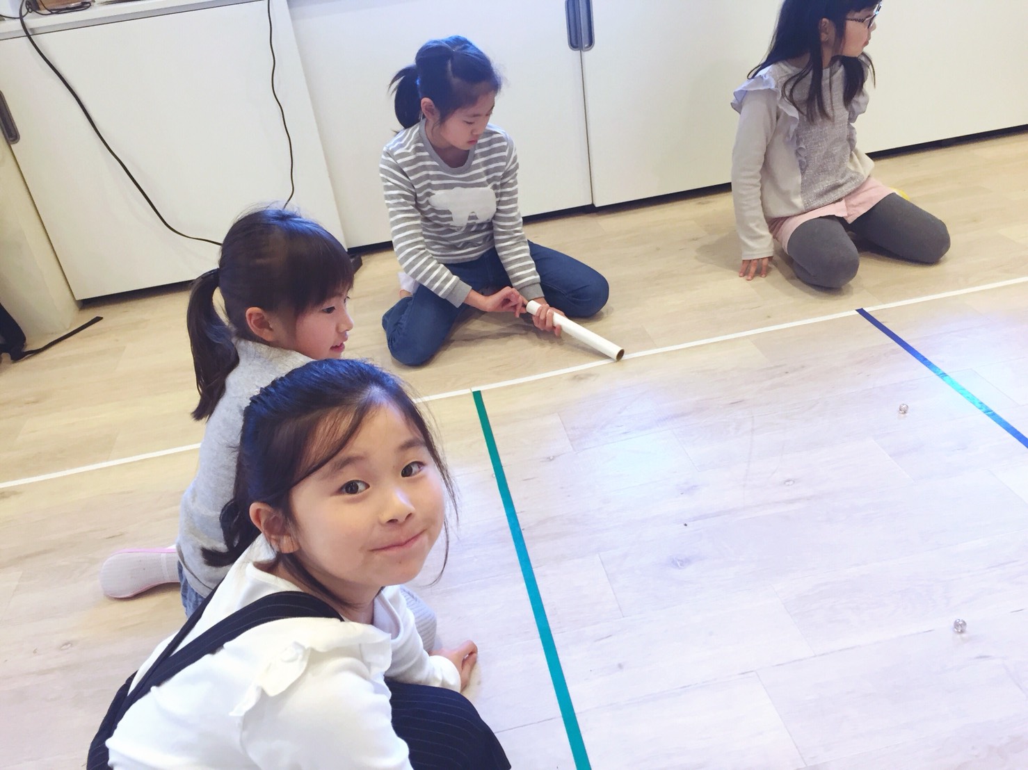 コロコロと勢いよく転がってしまうビー玉をどうしたら上手に単語カードの上に乗せられたかな?