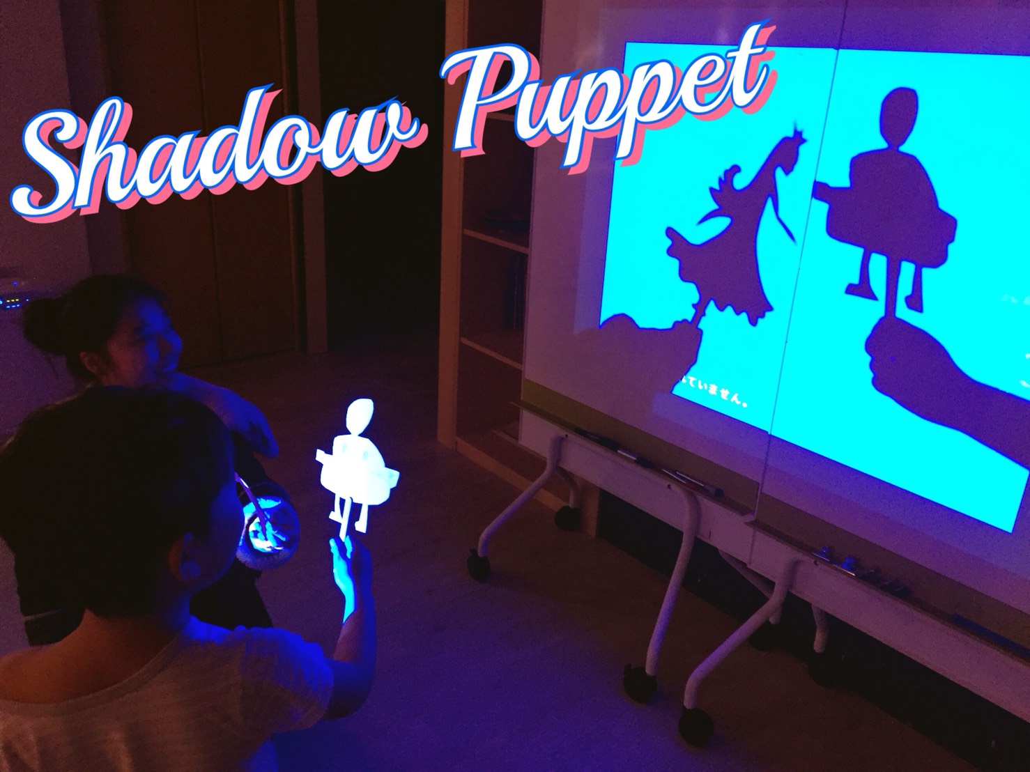 スクリーンに自分たちの作った”Puppets”(人形)を映し出してストーリーを展開しました。