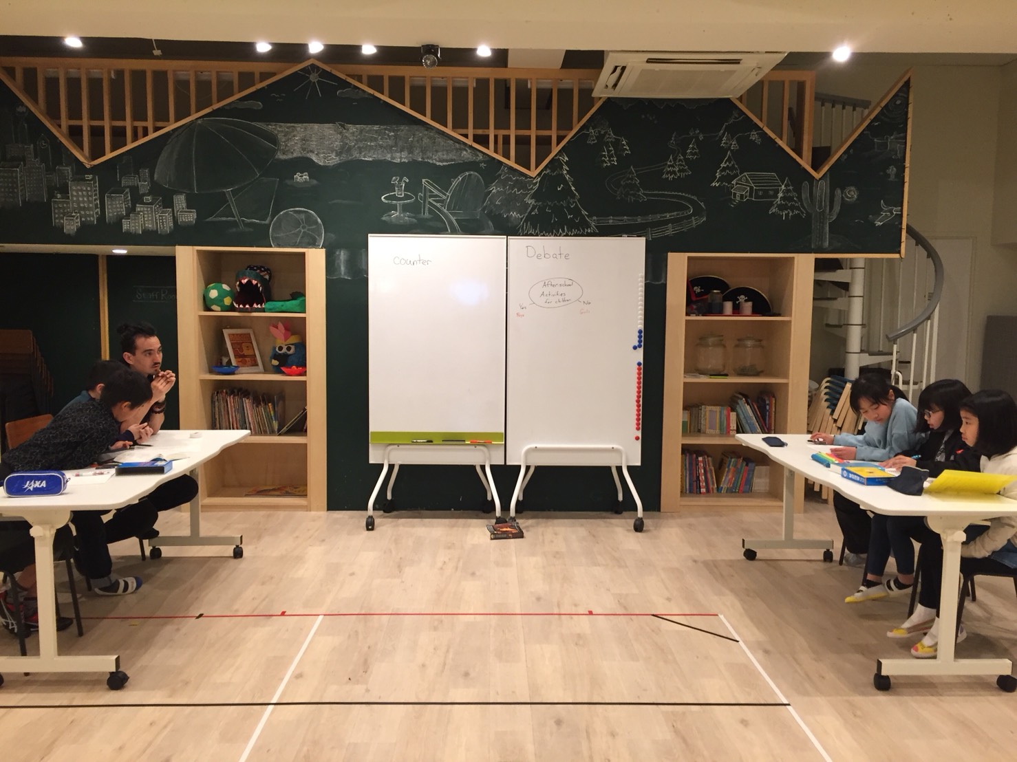 男女別々のチームに分かれて「トピックス」について、Yes=男子、No=女子チームに分かれてディベートをおこなしました。