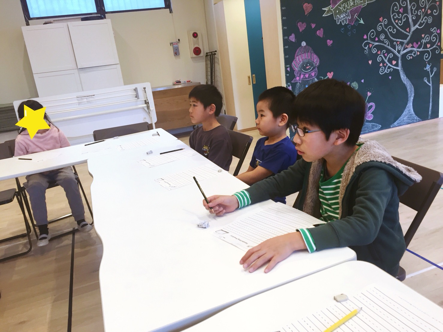 インフルエンザの影響でお休みしたり、学級閉鎖になってしまった生徒さんがいるなど、体調を崩す生徒さんが多い中、元気に来てくれた生徒さんたちにはまずはフォニックスから!先生が発音する単語を、自分のノートに聞いたままを書いていきます。 自分でも言い直したり、こうかな?こうかな?と先生がいった言葉をリピートしながら行いました。