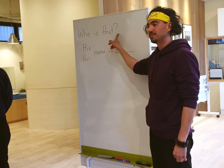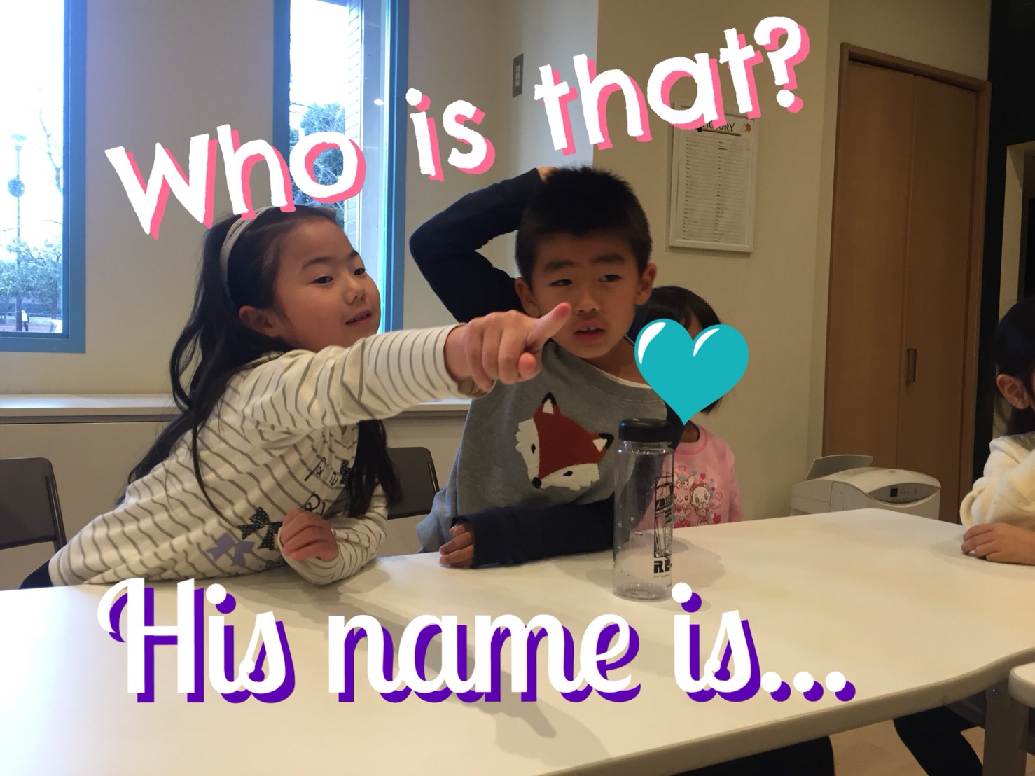 生徒さん:“He name is ____.”(彼、名前は○○です)