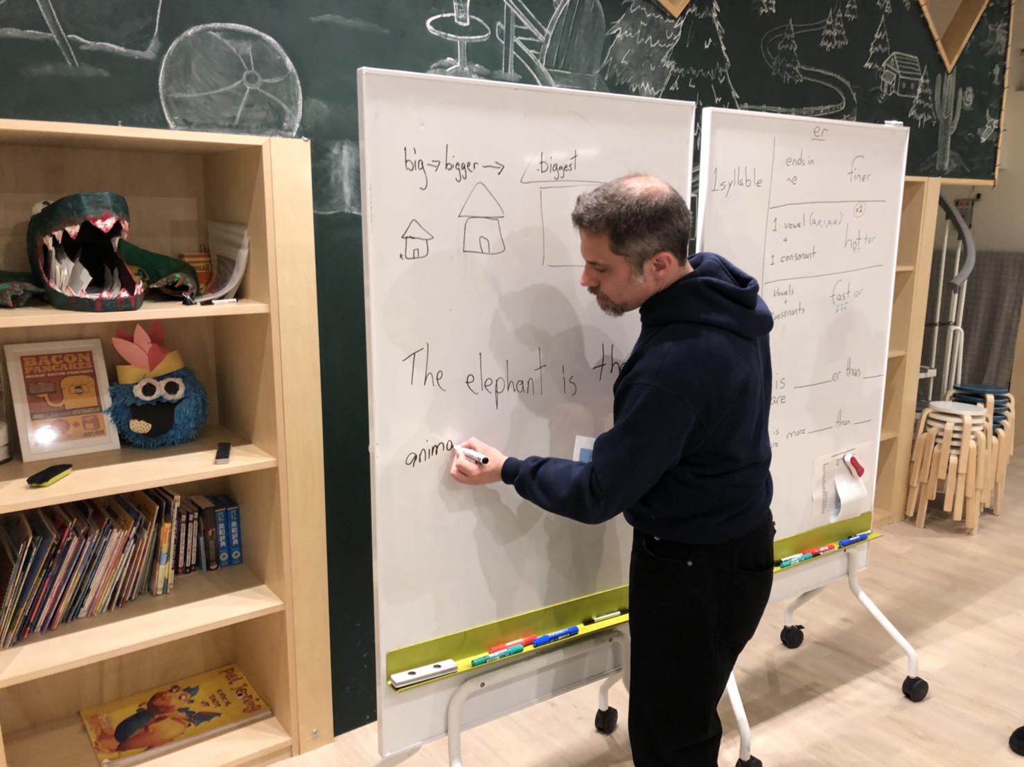 ナイトコースは、比較級の練習。母音、子音のルールを知って比較級になるとどういう言葉になるのか?勉強しました。 その後は実際にセンテンスを使ってみて練習です!