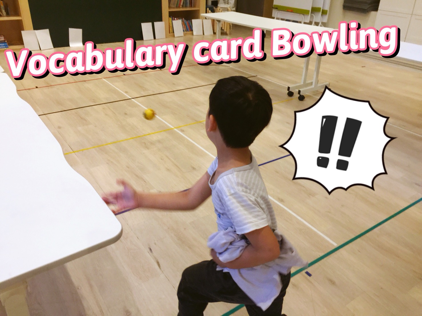 今日の”Workshop”(ワークショップ)の時間は”Sports”(スポーツ)で”Vocabulary bowling”(単語ボーリング)をやりました。