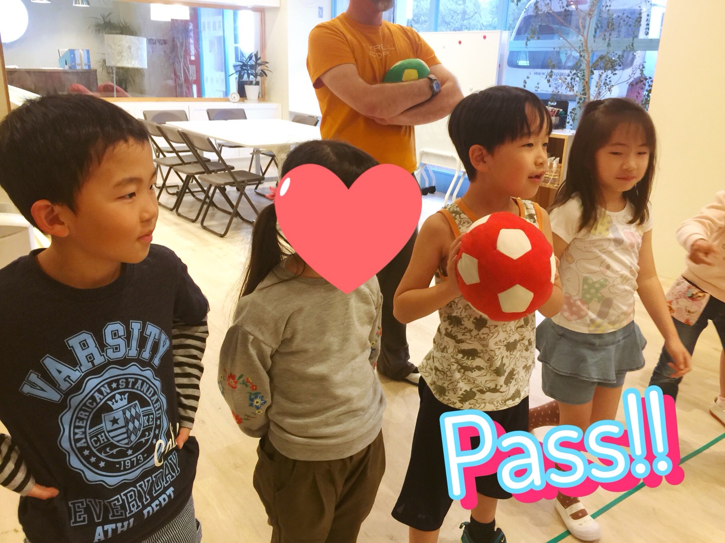 おやつからはお兄さん、お姉さんたちと合流してみんなで単語ゲームやボールトスゲームをやりました。