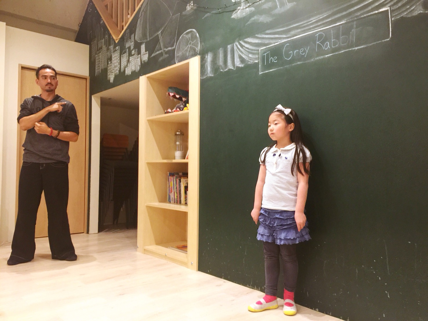 新しく入って来た生徒さんたちは、まずは先生たちと一緒にルールやスクールツアー、いろいろなシチュエーションで言う言葉や先生たちから言われるコマンドの言葉を引き続き練習。