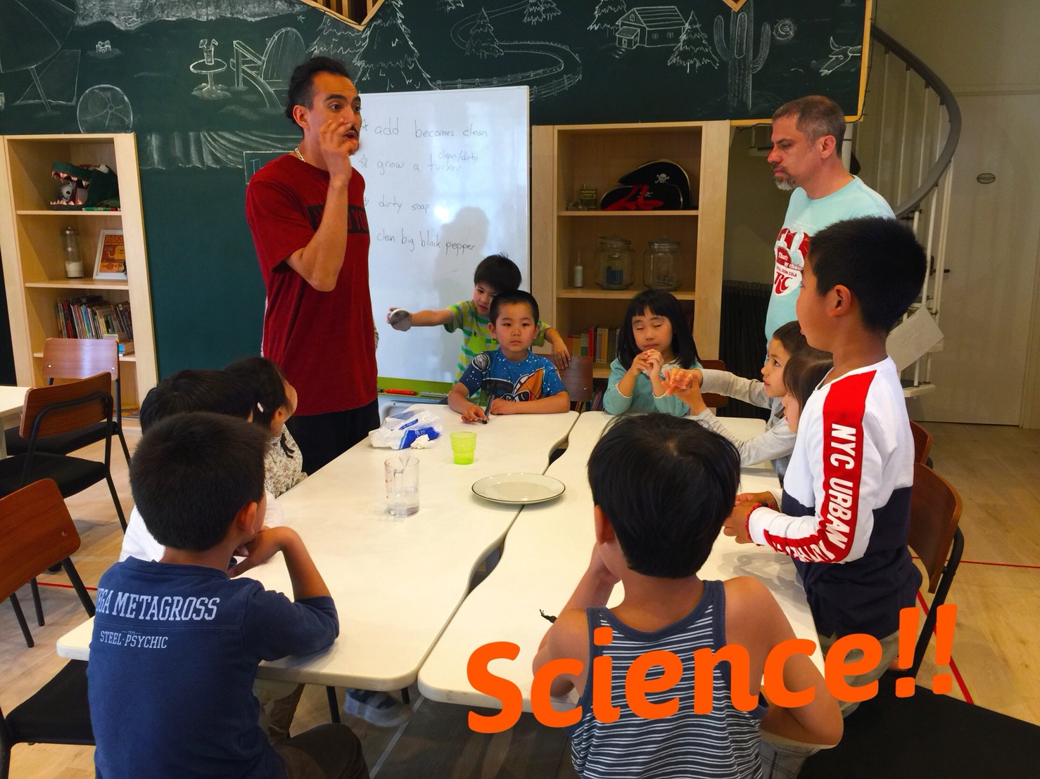 お兄ちゃん、お姉ちゃんたちは”Workshop”(ワークショップ)の時間に”Science”(サイエンス)をやりました。