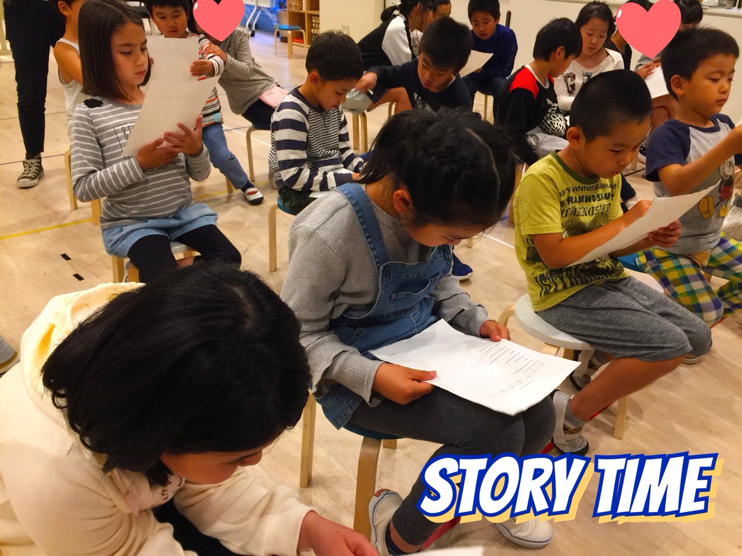 先生が読み聞かせてくれて、みんなで一緒に読む練習をして、分かる範囲で大丈夫なのでみんなの前で披露。