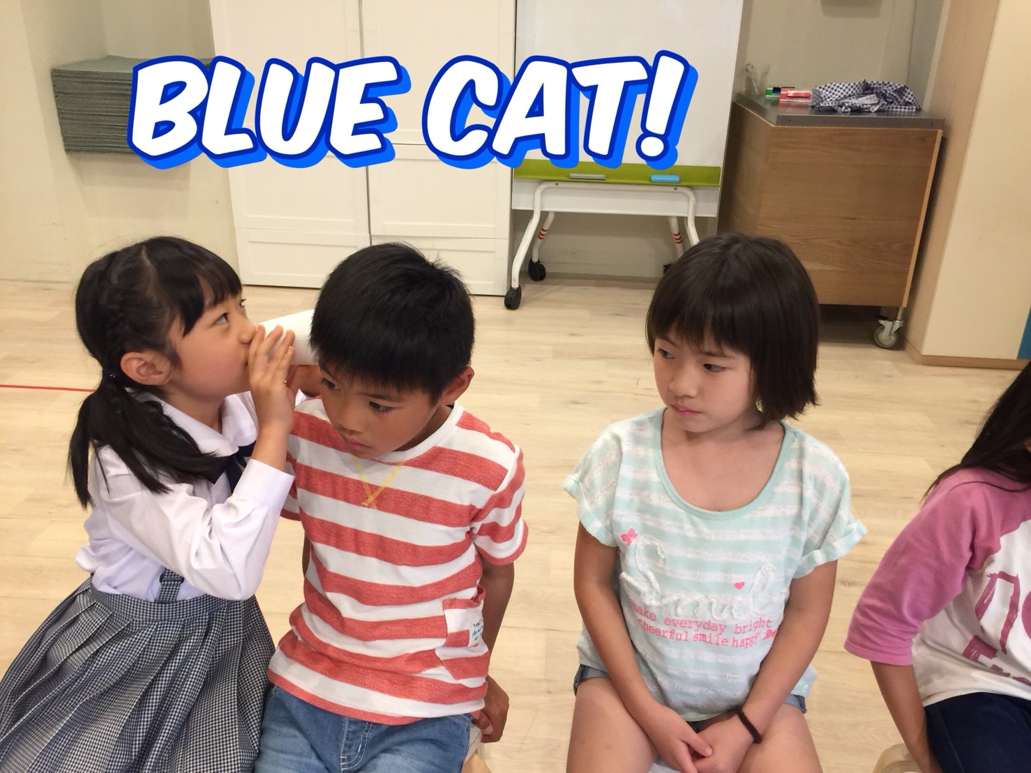 2チームに分かれて、どちらのチームが正確に言葉を伝えられるかのチャレンジをしました。Cat(ネコ)