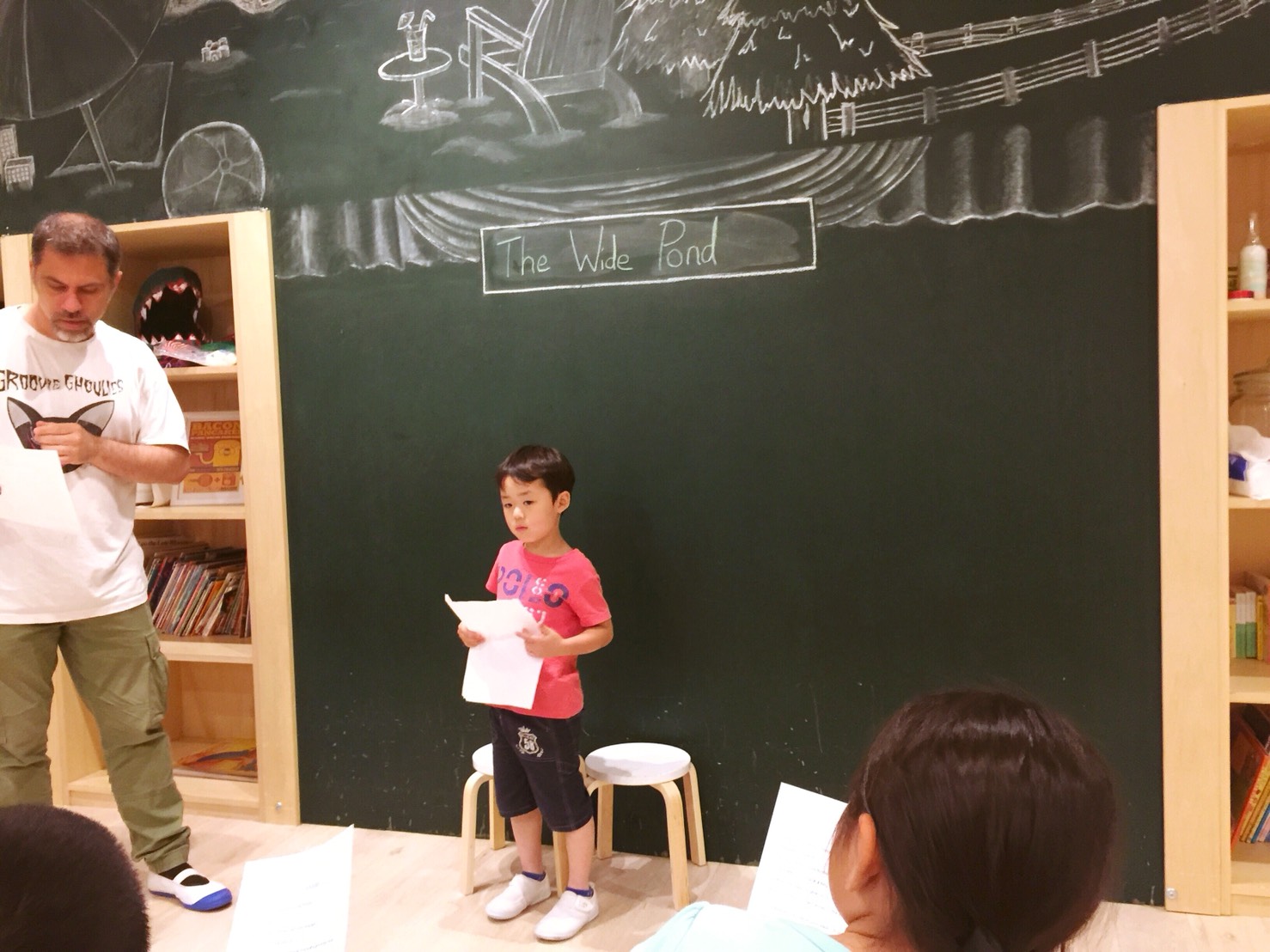 “I go to ____ elementary school.”(○○小学校に行ってるよ)