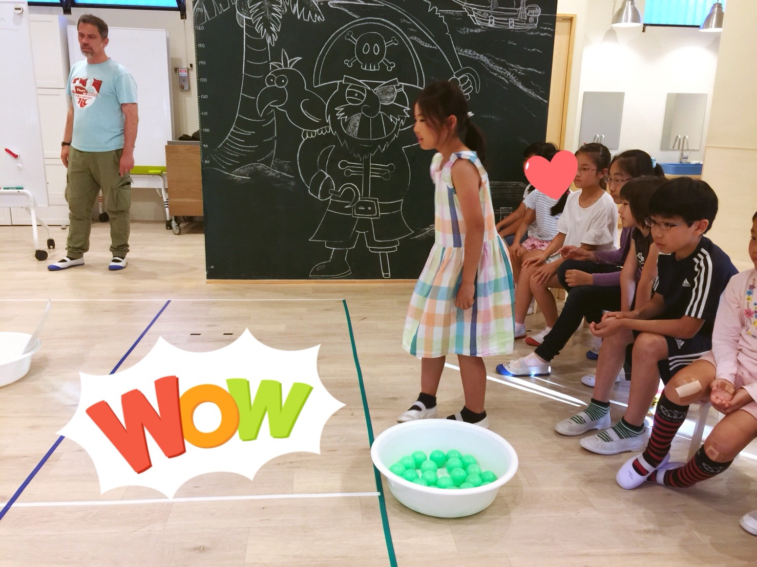 先生:”Good job! Hi-five!”(よく出来ました!ハイタッチ!)