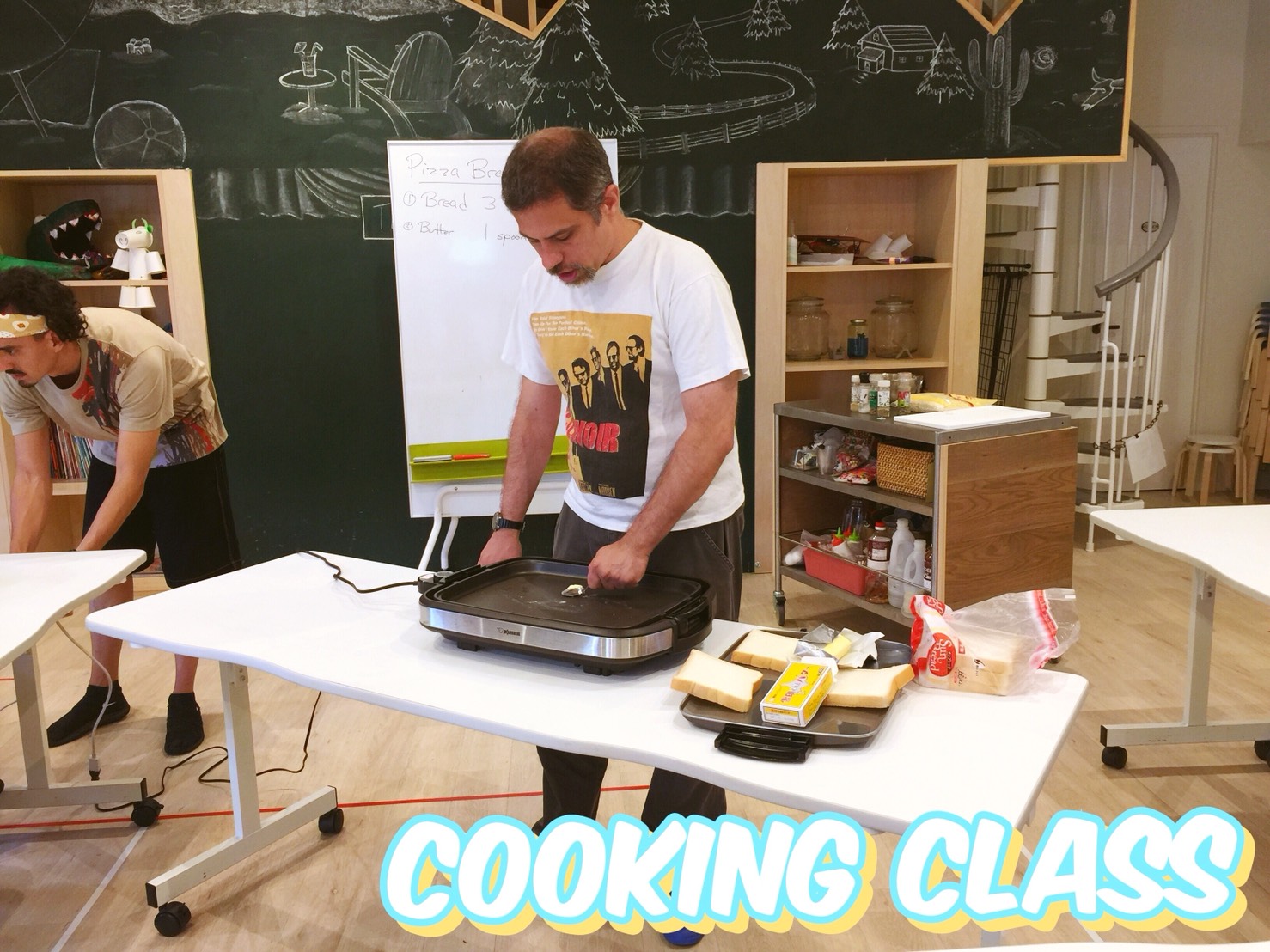 今日は先生たちがみんなにピザブレッドを用意してくれていました。材料をひとつひとつ確認してから、のせていきますが。。。