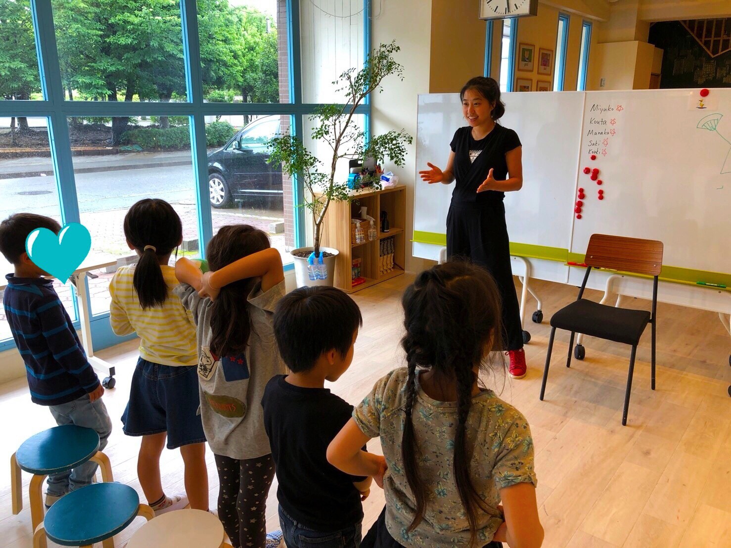 新しい生徒さん達はキャスパー先生と一緒にアルファベットの大文字と小文字のゲームや食べ物の単語を練習しました。