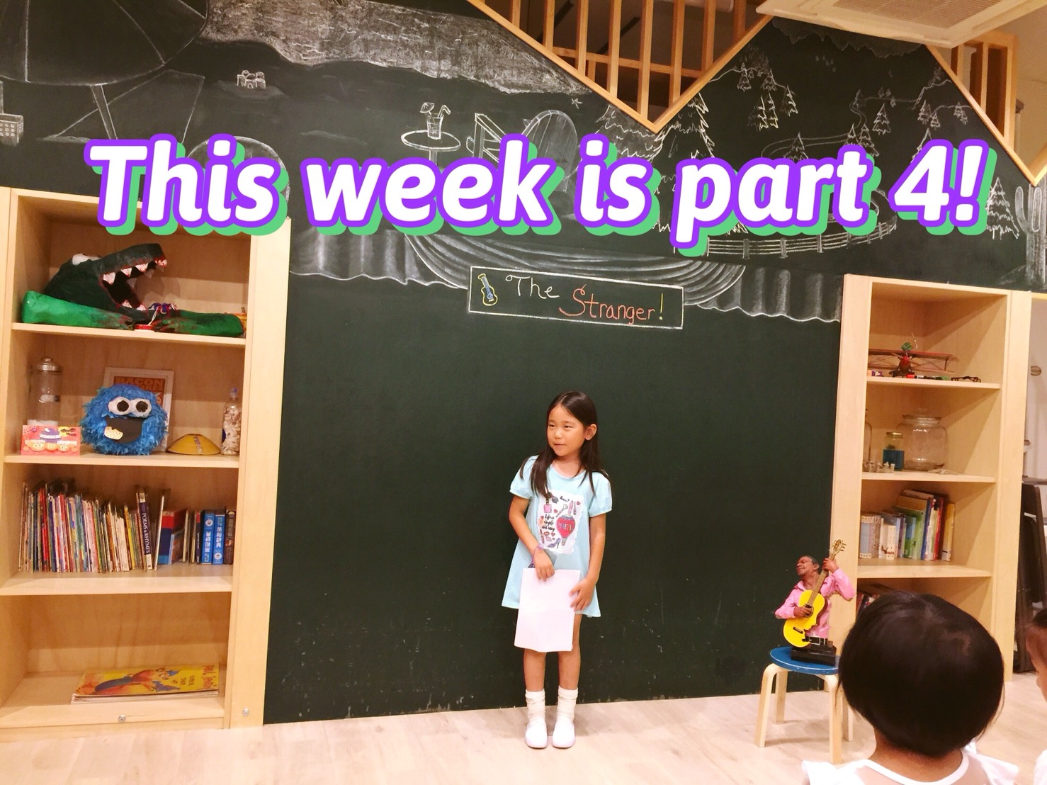今月からの新しい取り組みとして、6時半頃から行っている”Story time”(ストーリータイム)に”Spotlight time”(スポットライト・タイム)が加わります。今まではストーリータイムに“Who wants to try?”(トライしたい人?)と聞いて、やりたい生徒さんを優先にみんなの前で覚えたストーリーを披露してもらっていました。