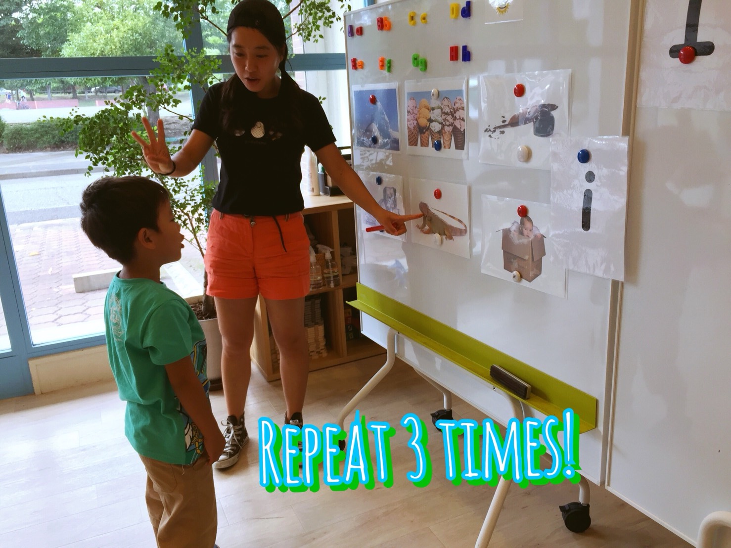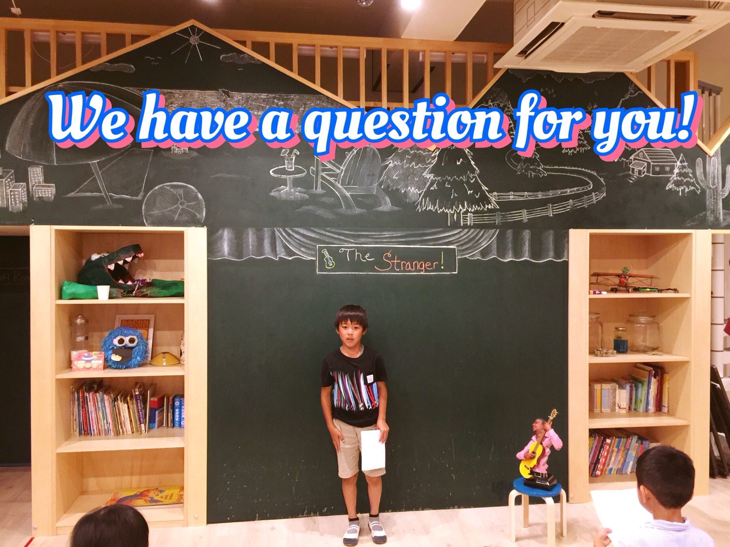 ストーリーの内容に関しての”Question”(質問)を取り入れます。先生達からランダムにストーリーの内容に関する質問があるので、ストーリーを読んで自分で理解した”Answer”(答え)を1つ出してみよう。