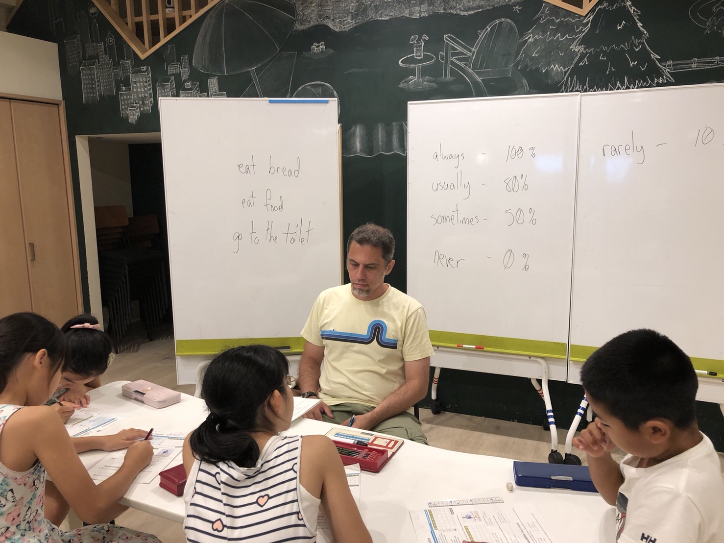 ナイトコース。文法と会話の練習をしながら今日は「頻度」のワードをみつけよう。