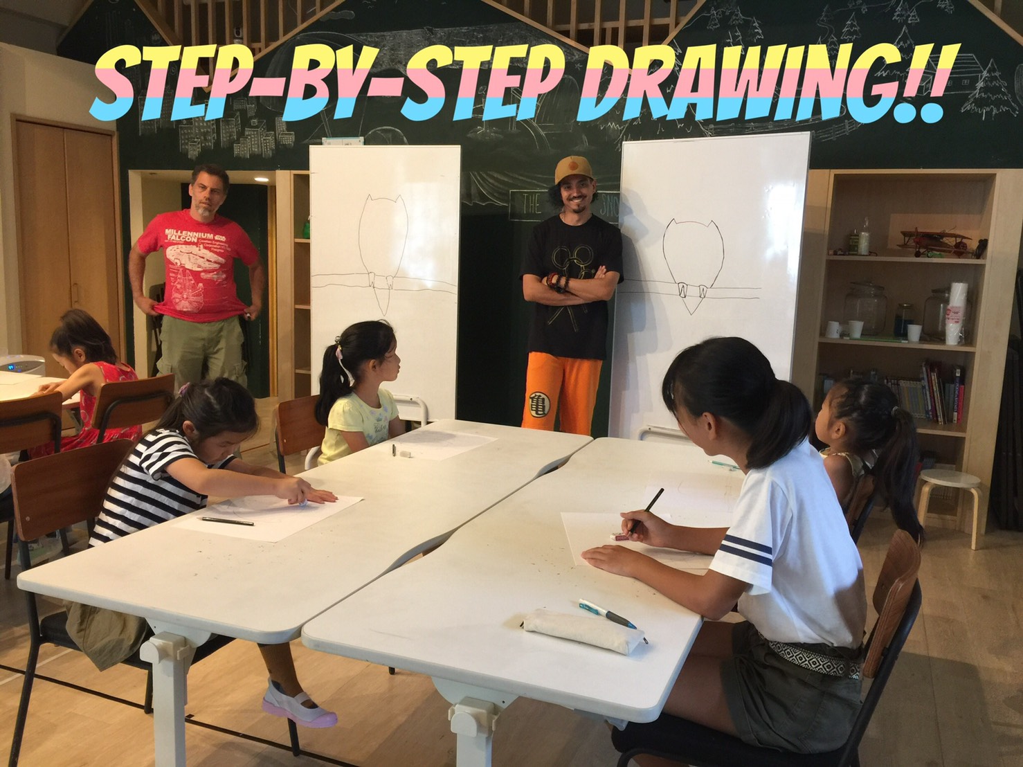 サマースクール14日目のイベントは”Step-by-Step Drawing”(絵画教室)でした。