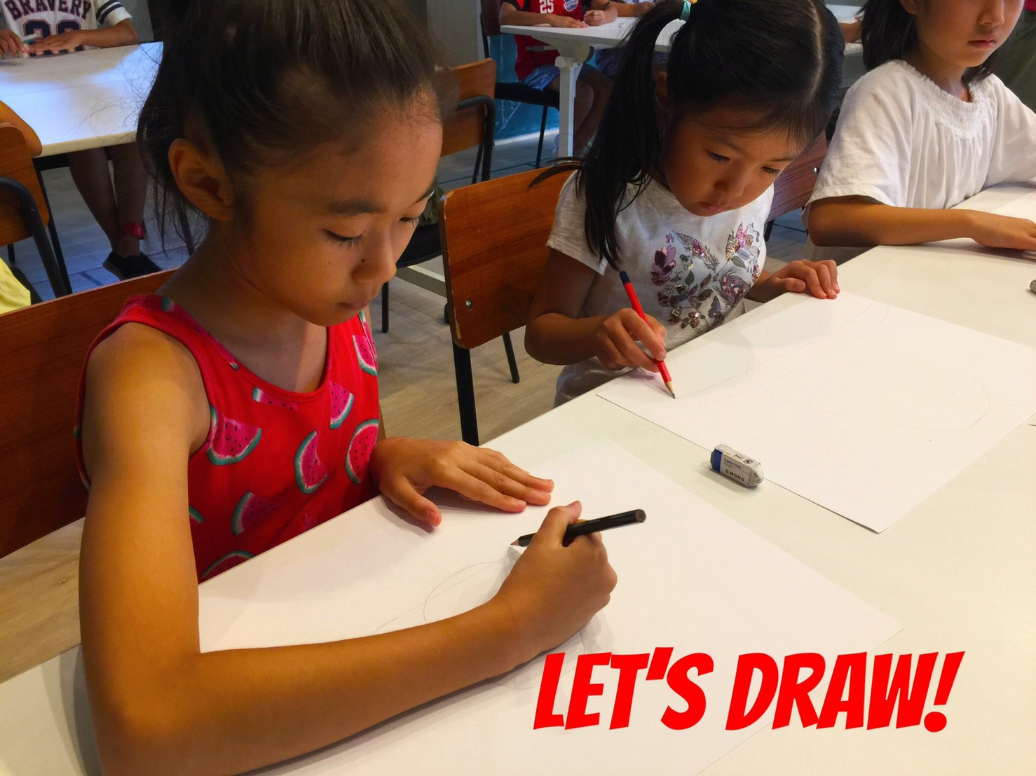 サマースクール14日目のイベントは”Step-by-Step Drawing”(絵画教室)でした。