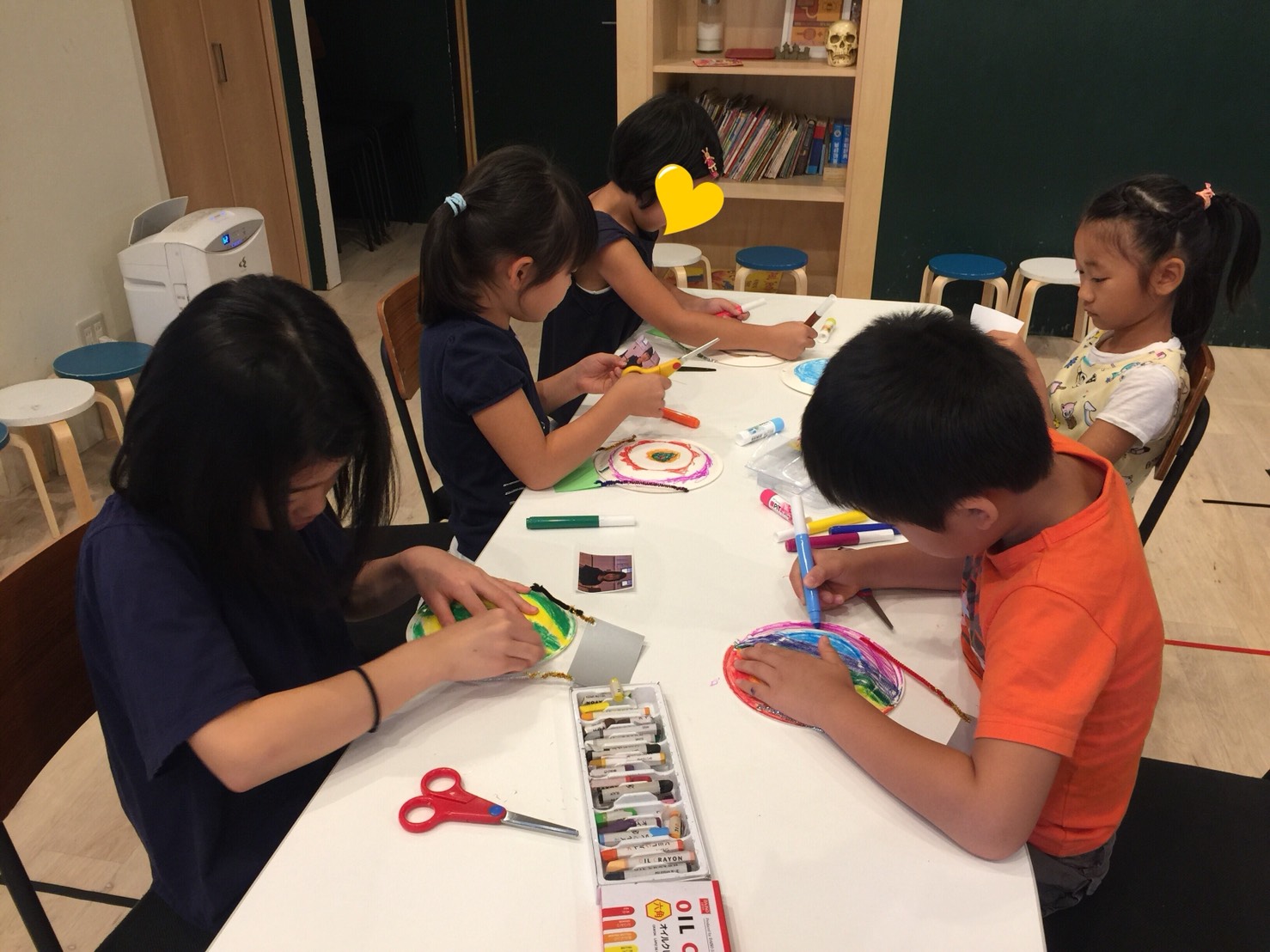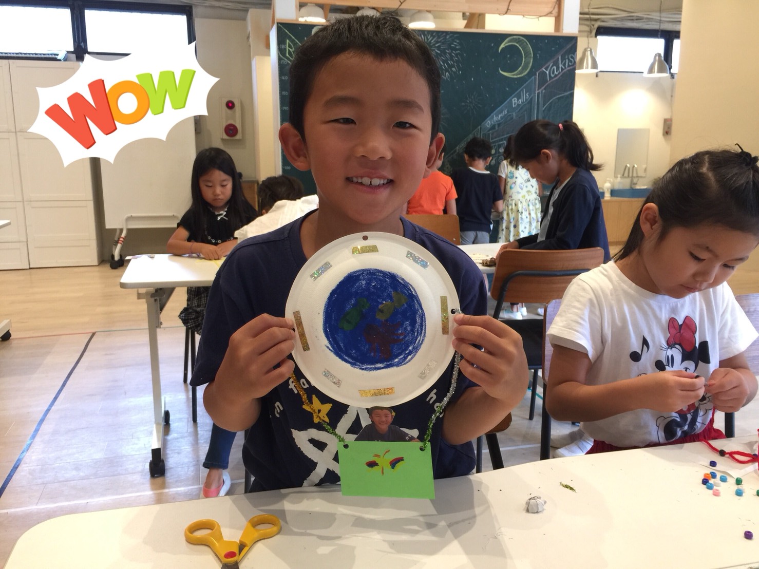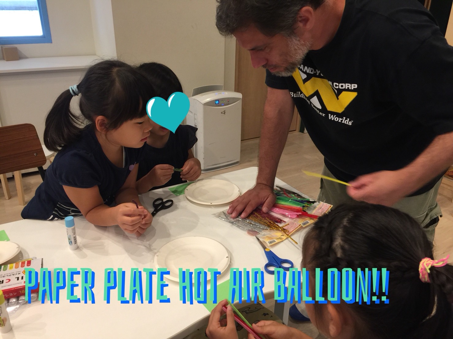 サマースクール16日目のイベントは”Paper Plate Hot Air Balloon”(紙皿で熱気球)を作りました。
