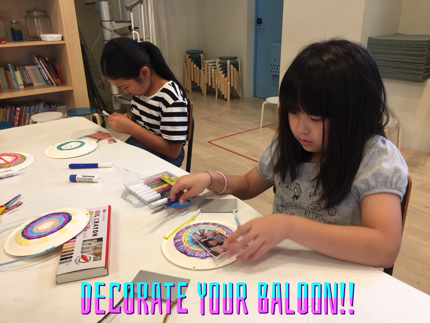 先生:”Use whatever you want to use to decorate your balloon.”(好きな物を使ってデコレーションしていいんだよ)