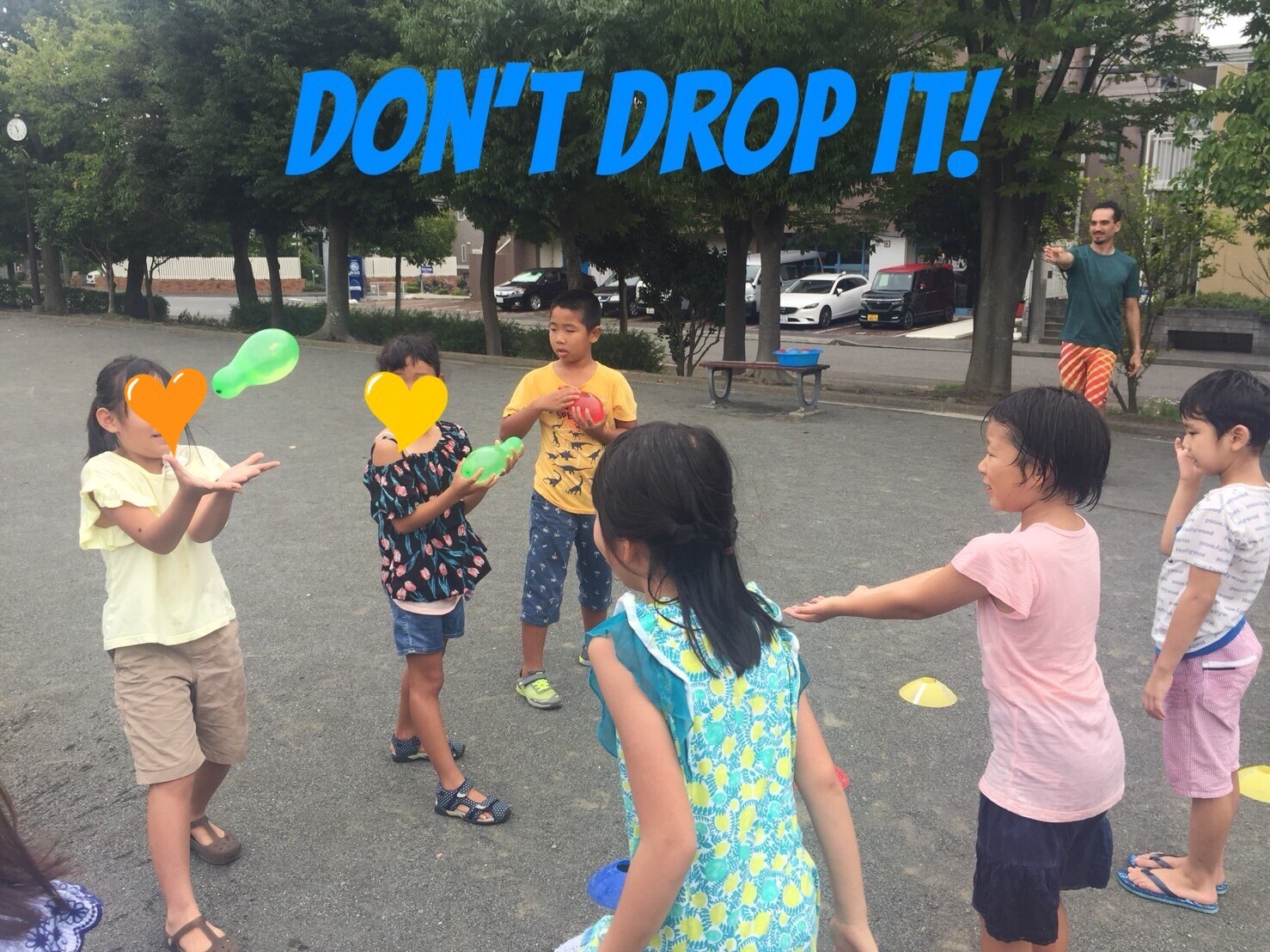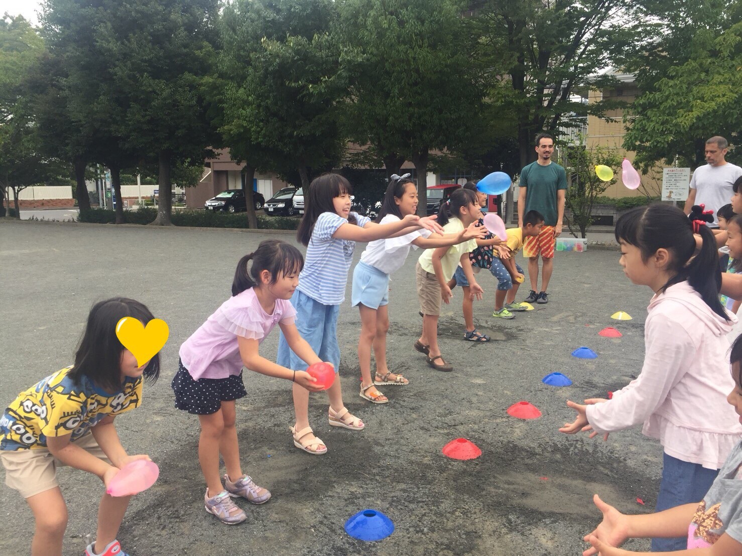 公園に移動して軽く準備運動をした後は、まずは“Water Balloon Toss”から始まりました。