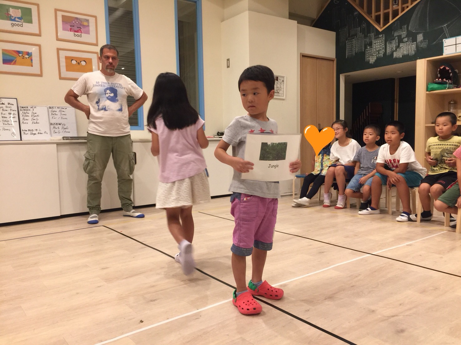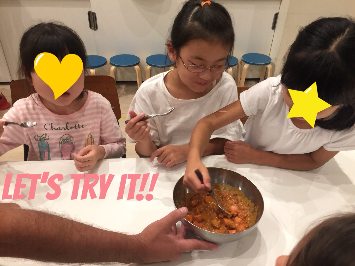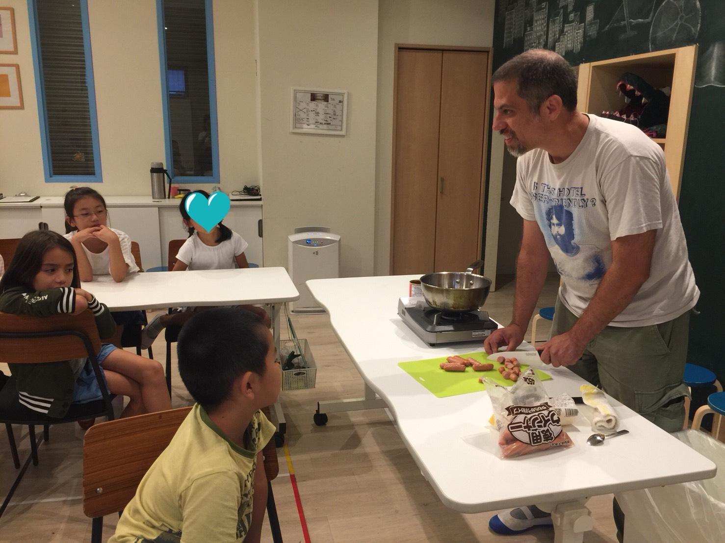先生:“We are going to make chili today.”(今日はチリを作るよ)生徒さん:”Chili?”(チリ?)