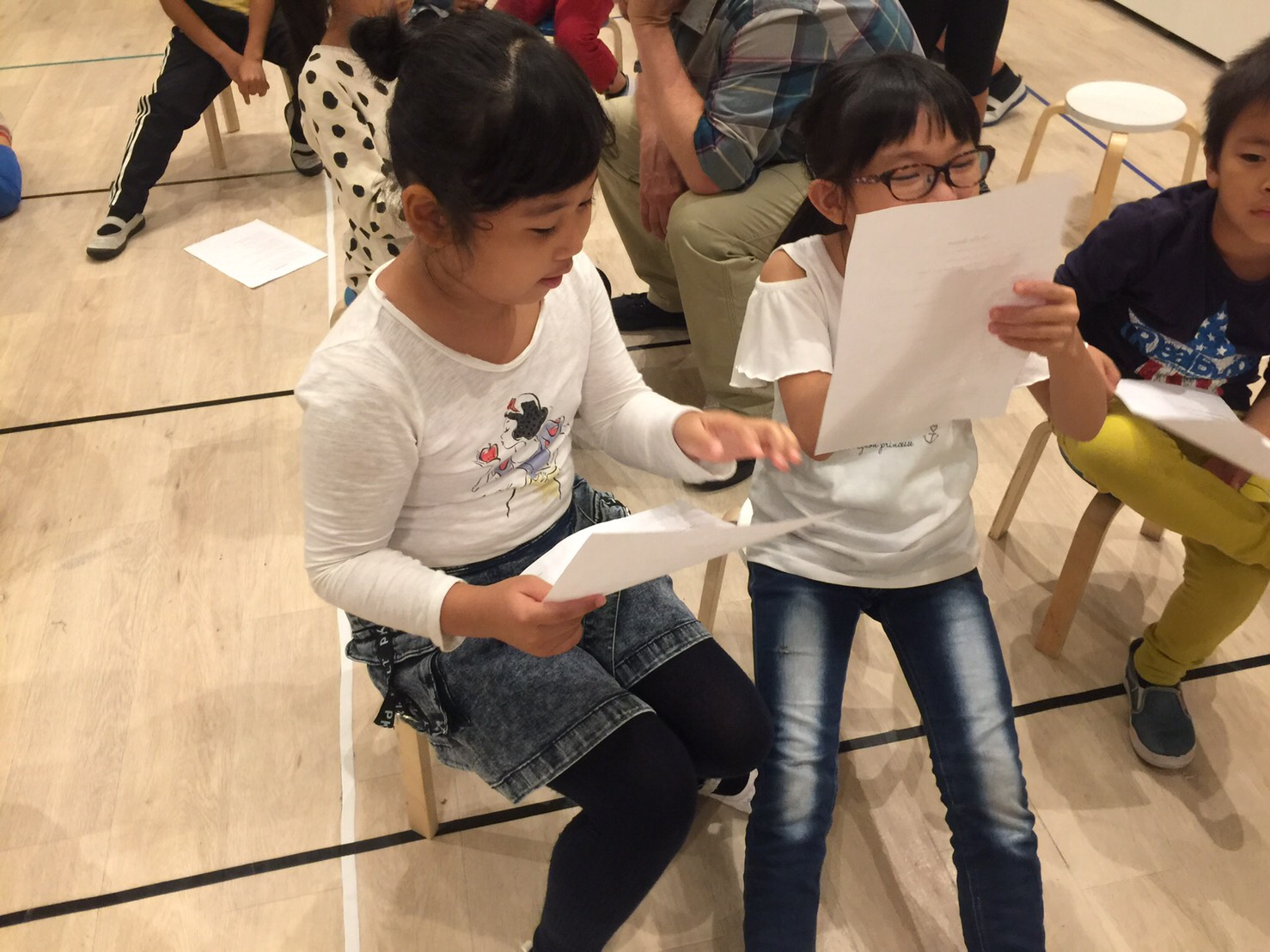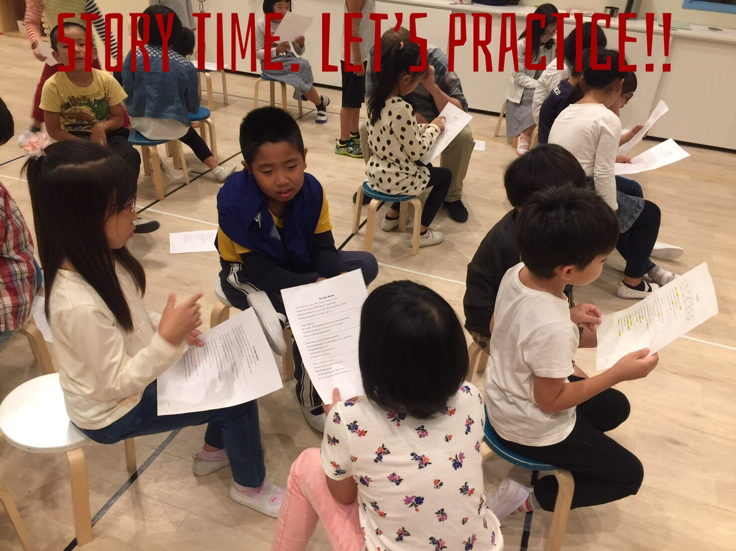 ストーリーもチームに分かれて読む練習、発表を行いました。先生の発表を聞いて参考にしてみてね。