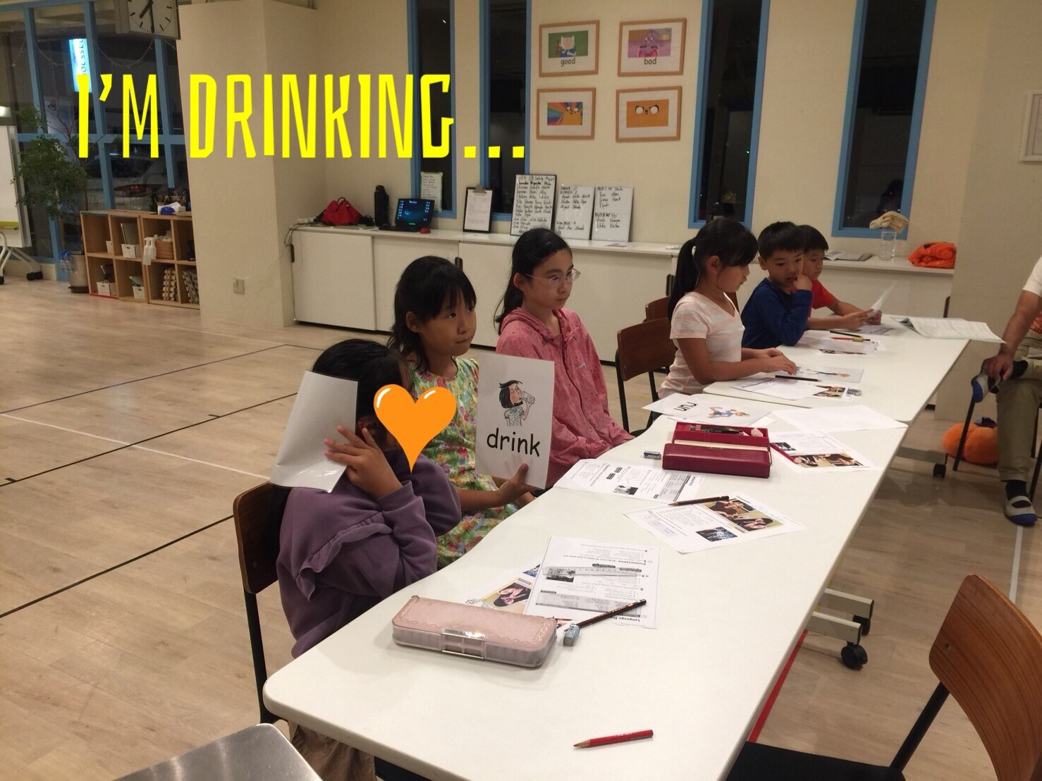 生徒さん:”I’m drinking tea!”(お茶を飲んでいます!)