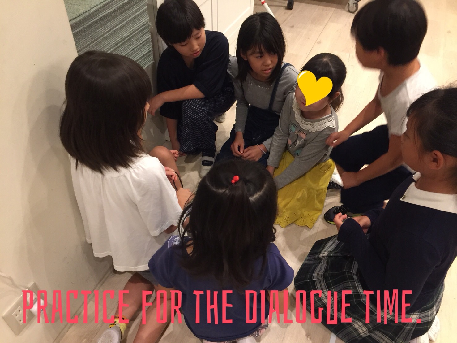 先生達が電話で会話をしているロールプレイを見せてくれて、現在進行形のお手本をチェック。