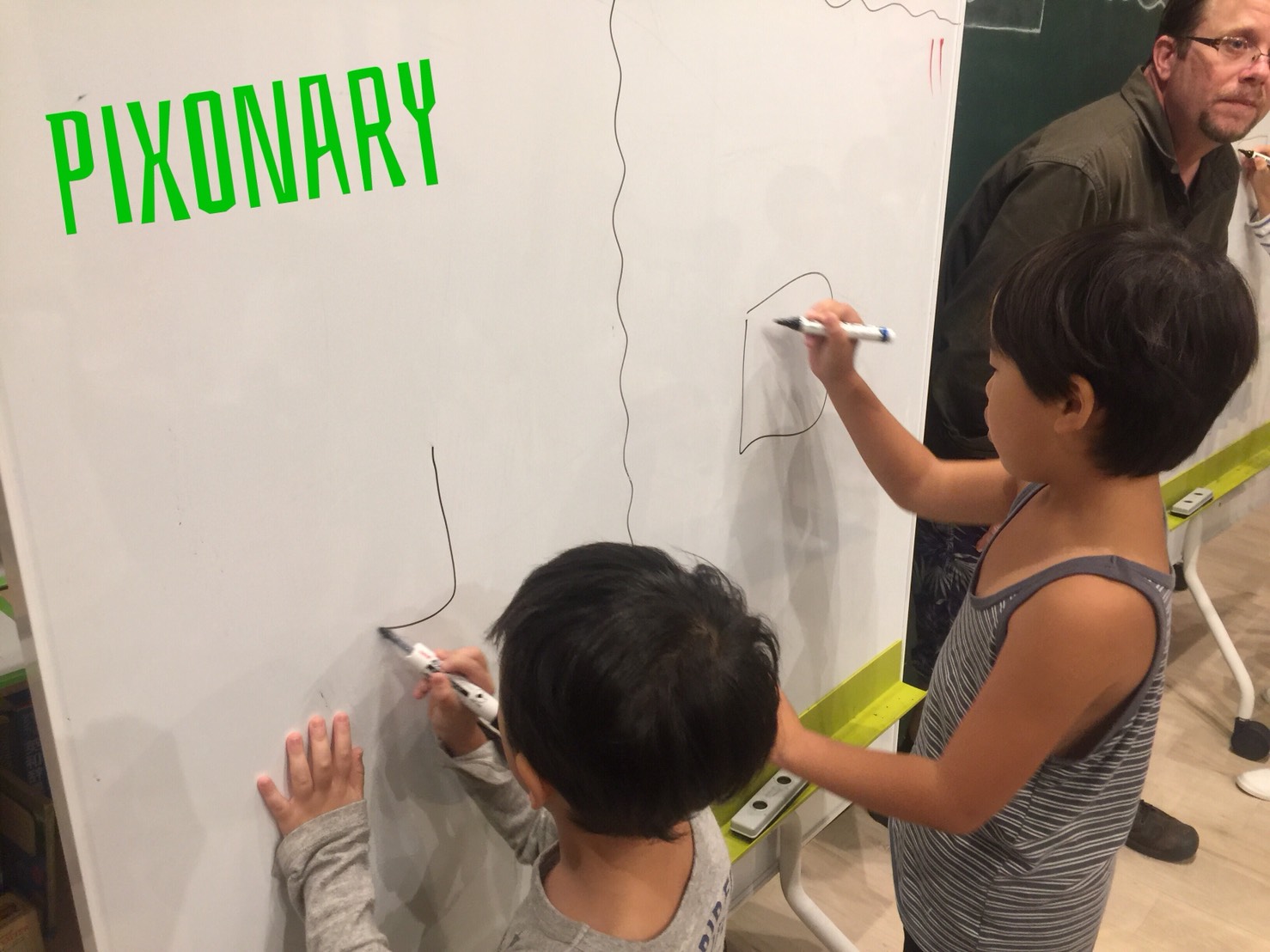 今日は“Pixonary”を行いました。単語を「絵」で表してそれが何の単語かを当てるゲームです!