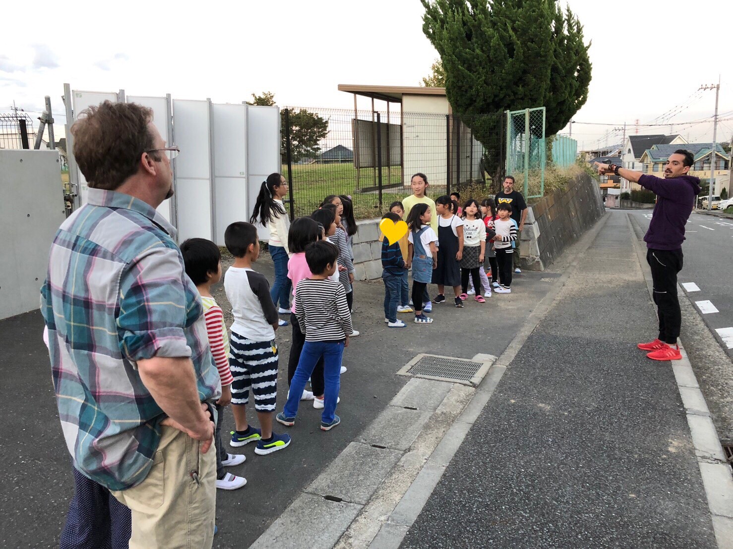 スクール内の安全スペースから、公園に避難、そこから近所の中学校まで歩いて移動をしました。“This is where we will come when something happens.”(何かが起こった時には、ここに移動をするからね)