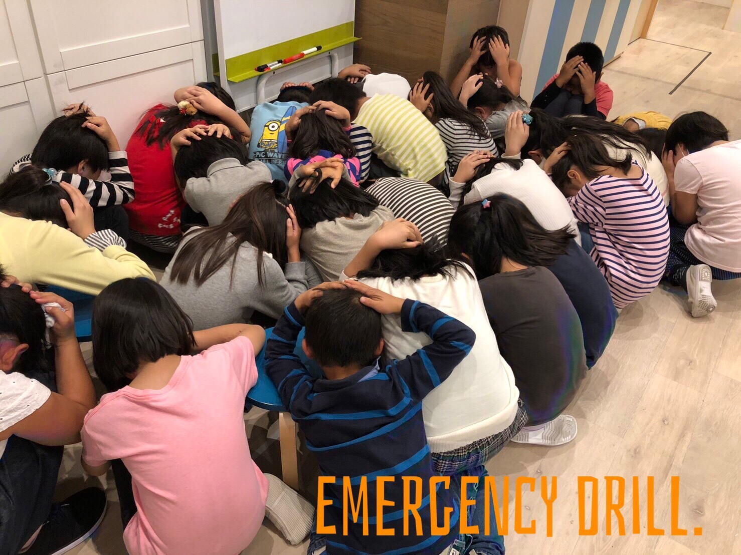 スクール内の安全スペースから、公園に避難、そこから近所の中学校まで歩いて移動をしました。“This is where we will come when something happens.”(何かが起こった時には、ここに移動をするからね)