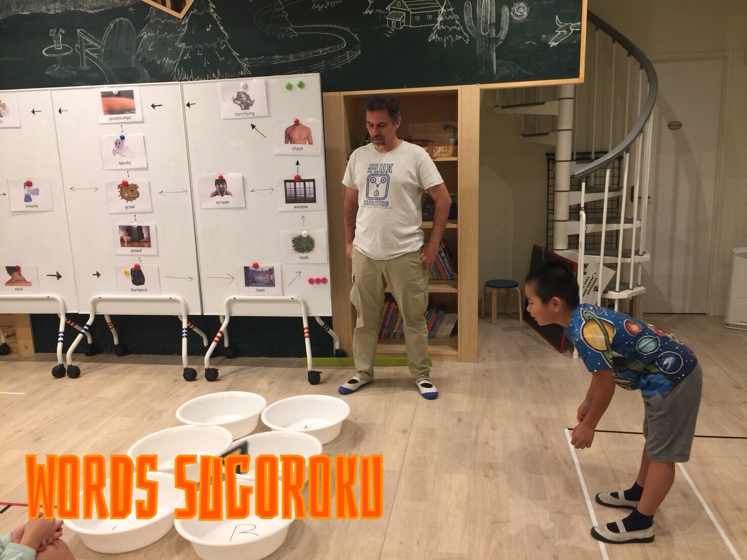 先生:”Write this five times on your paper.”(これを紙に5回書いてごらん)