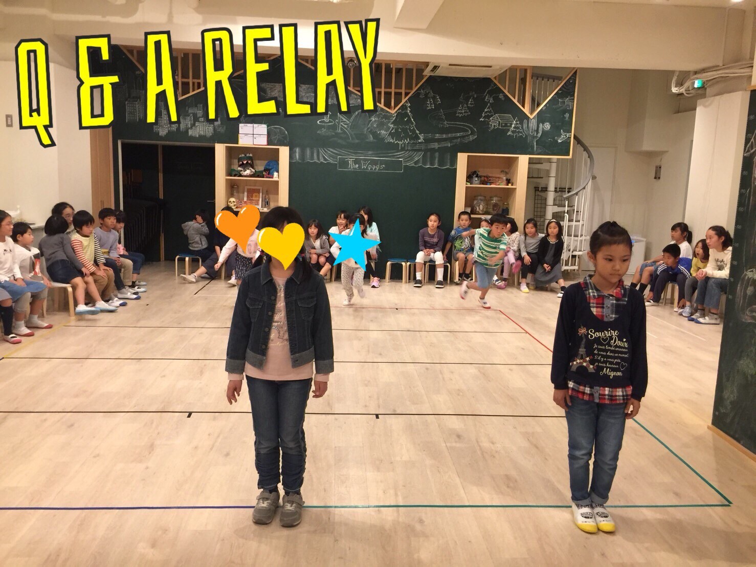ライティング用の紙とえんぴつ、消しゴムをもらったら”Let’s try.”(チャレンジしてみよう)アルファベットをホワイトボードに書いて、先生から質問。